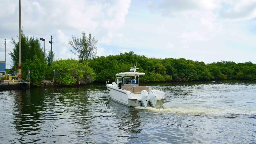 At just over 40 feet, the Tender 11 is Nimbus’ vision of the perfect day boat. She perfects easy living on the water, providing an innovative social environment for friends and family to gather and relax. This means a large lounge area with adjustable seating and dining configurations, multiple sun beds, outdoor galley for entertaining, gyro stabilization, vast storage for gear and water toys, and an impressive amount of deck space which allows for an overwhelming freedom of movement. With a wide range of engine options and thanks to a stepped hull design, you can cruise comfortably with speeds anywhere between 20 and 40 knots.