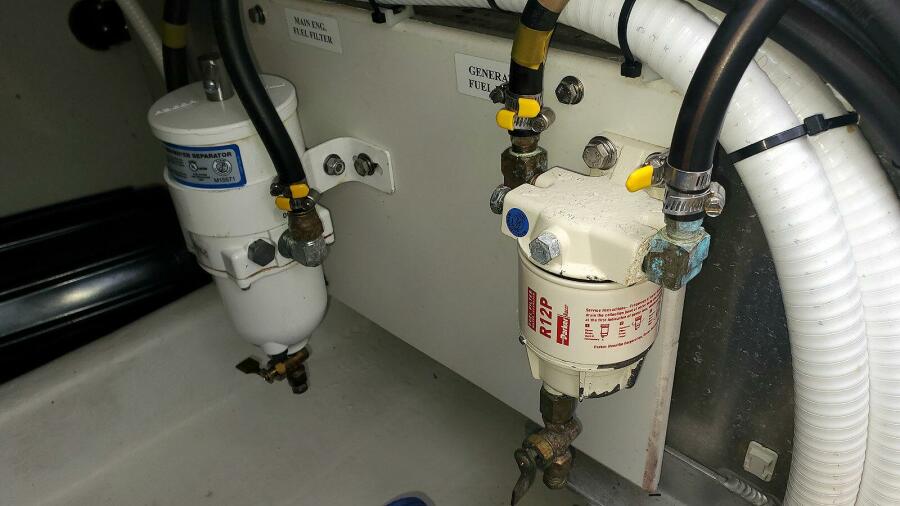 A few steps up lead to the bright, raised pilothouse, offering bench seating to port and starboard, a well-equipped helm forward to starboard, and side deck doors for easy line handling or quick access outside. The companionway forward to port leads to the master stateroom, with the head to starboard at the base of the stairs and the private stateroom just ahead. Engine room access is conveniently located through three hatches in the pilothouse sole.