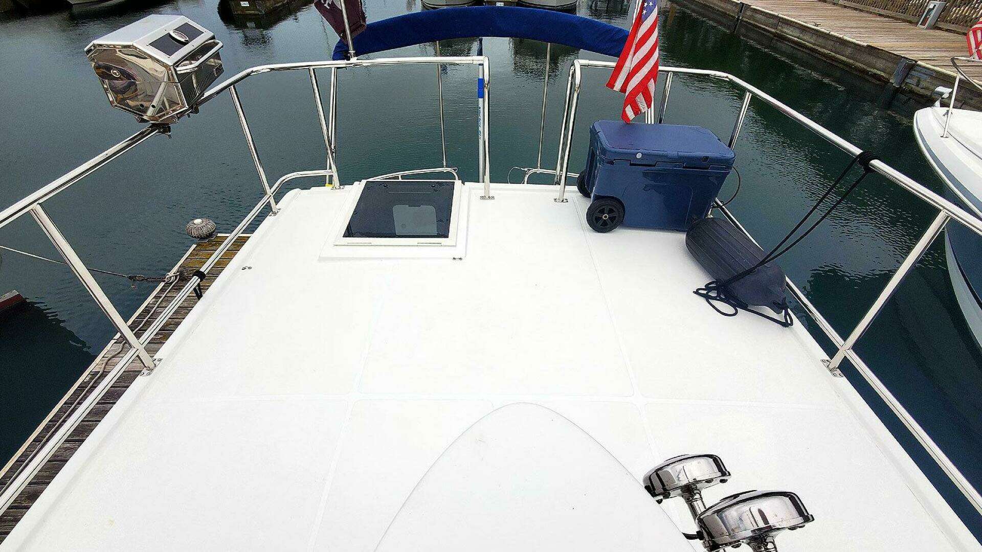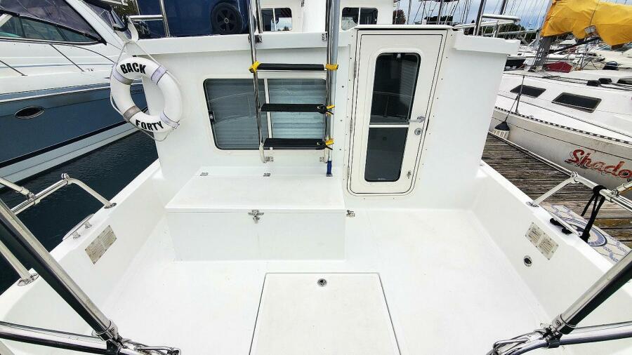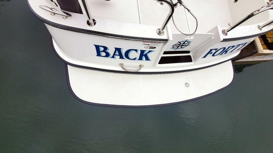 Board Back Forty easily from either pilothouse side door, cockpit entry, or through the transom door from the swim platform. Step aboard and you’ll immediately appreciate the thoughtful layout designed for both comfort and practicality.