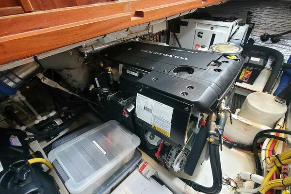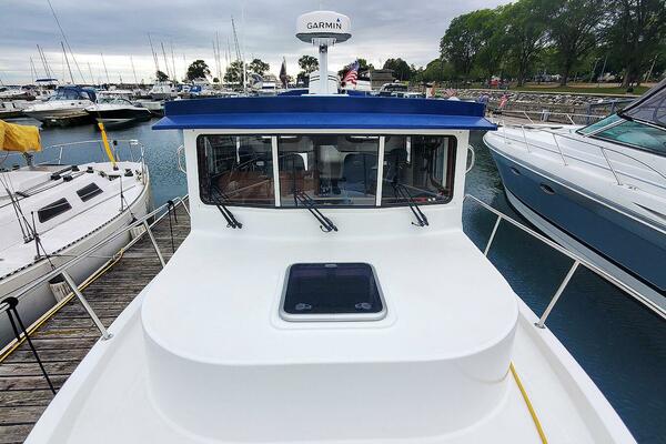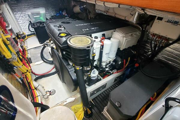 Built in the USA, her hand-laid, semi-displacement hull with full keel and hard chine delivers a seaworthy, stable, and fuel-efficient ride. Powered by a Volvo D4 300-HP diesel main engine and an Onan generator, she features two-zone reverse-cycle air conditioning, a well-appointed pilothouse, an fully equipped L-shaped galley, and comfortable living spaces throughout the main cabin and master stateroom.