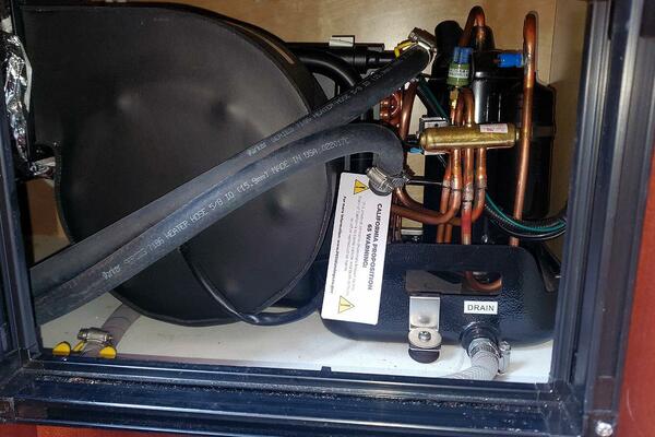 The L-shaped galley is along the entire port side of the main cabin and features: