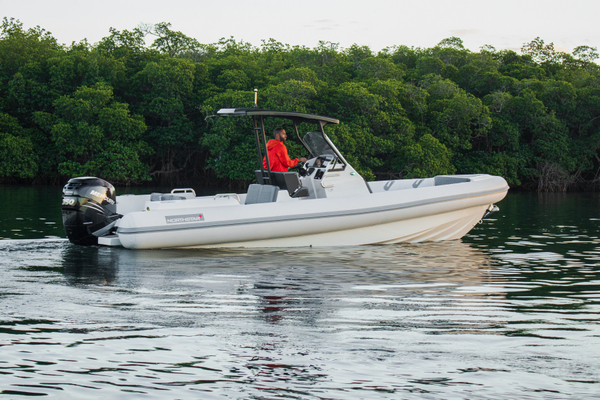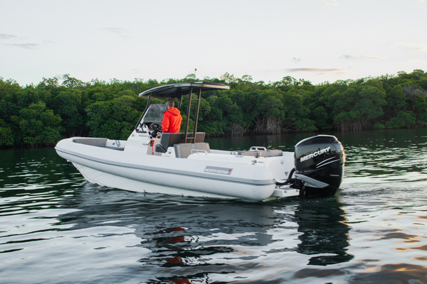 Loaded with impressive standard features, the Orion 8 includes Silvertex marine upholstery, large storage compartments, acrylic glove box with USB charging socket , twin flip-up seats, Hypalon tubes, hydraulic steering system, electrical plant with navigation lights and basic lighting, foldable table and 36L Igloo cooler, automatic bilge pumps, tempered glass windshield, swim platform, stainless steel swim ladder, telescopic cleats and stainless steel console and aft seat grab handles,