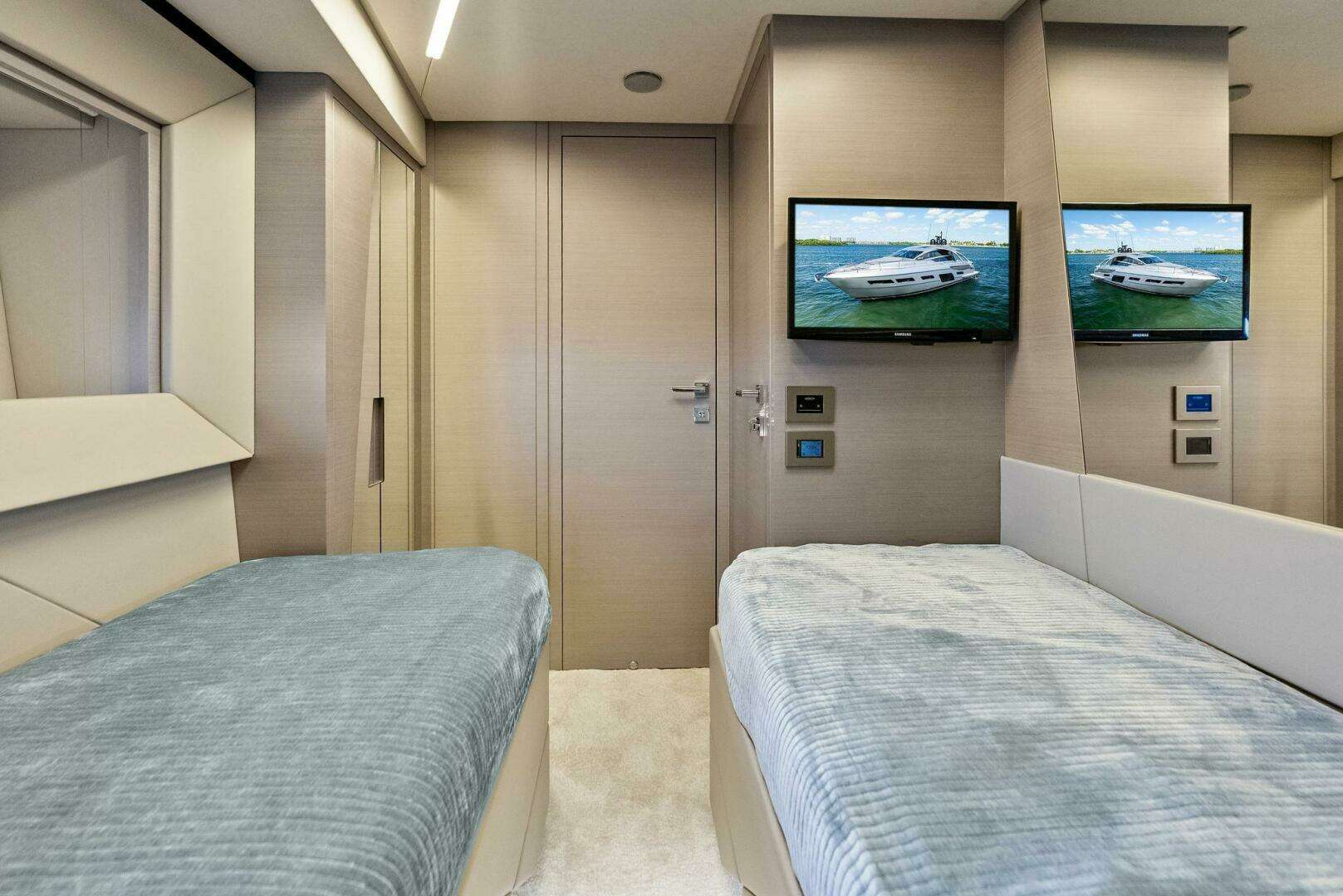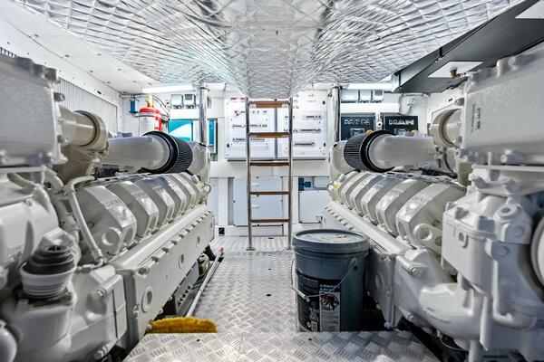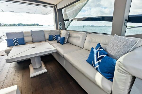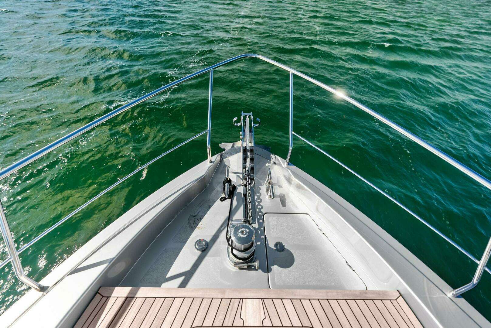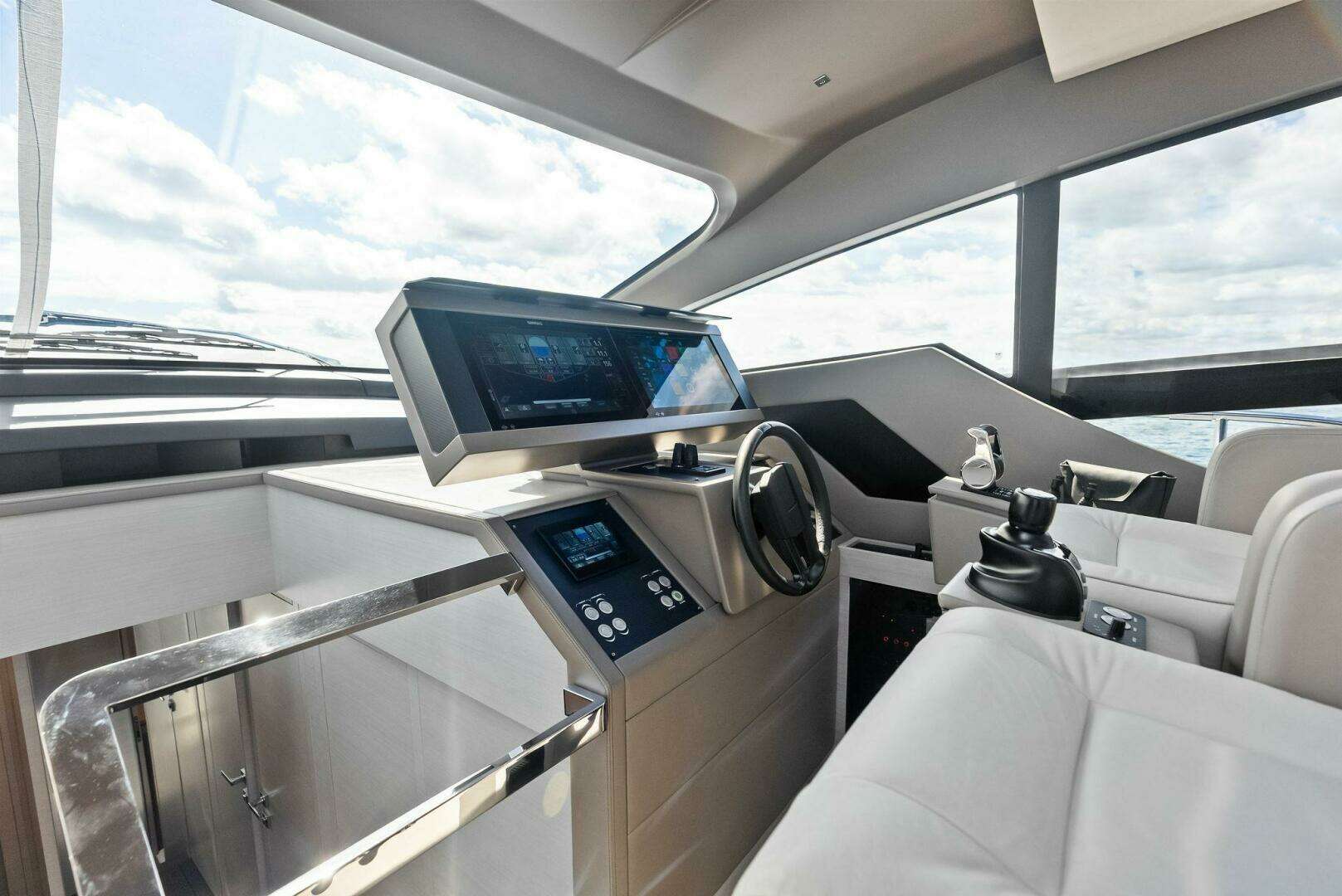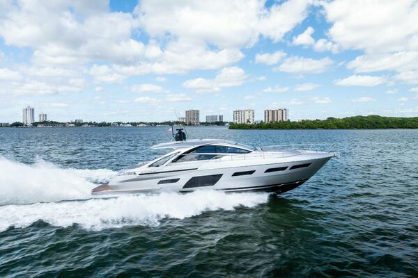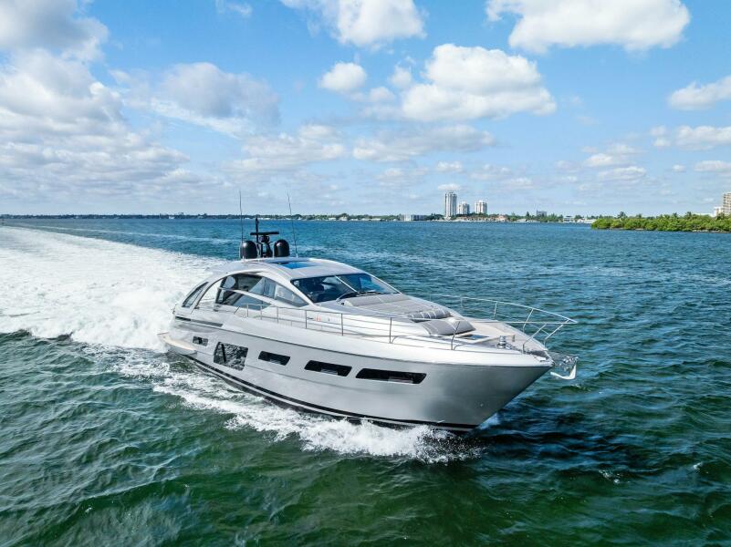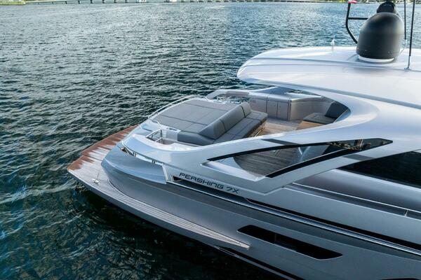 The pioneering construction solutions allow the Pershing 7X to reach the incredible speed of 50 knots. The boat comes with 1800 MHP twin MAN V12 engine. The innovative Dynamic Positioning System lets Pershing 7X maintain its position even when winds or currents are strong.