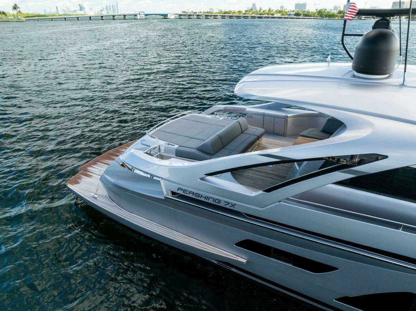 Can a lightning-bolt of emotion generate infinite wonder? The Pershing 7X concentrates the quintessence of Pershing in a compact, flawless form. 7X is lightness. 7X is speed. 7X is performance in each and every detail. A fabulous blend of the latest Pershing technology and the unmistakable design by Fulvio De Simoni.