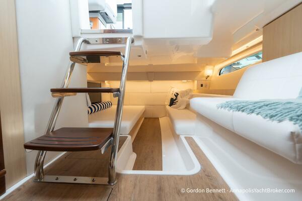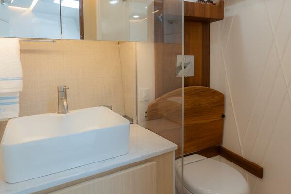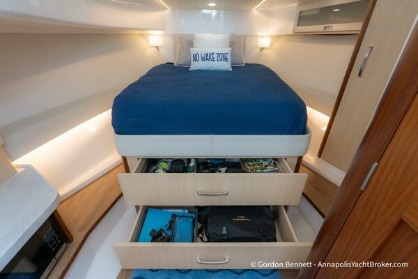 - Seakeeper stabilization keeps her comfortable even when afternoon chop builds across the Bay