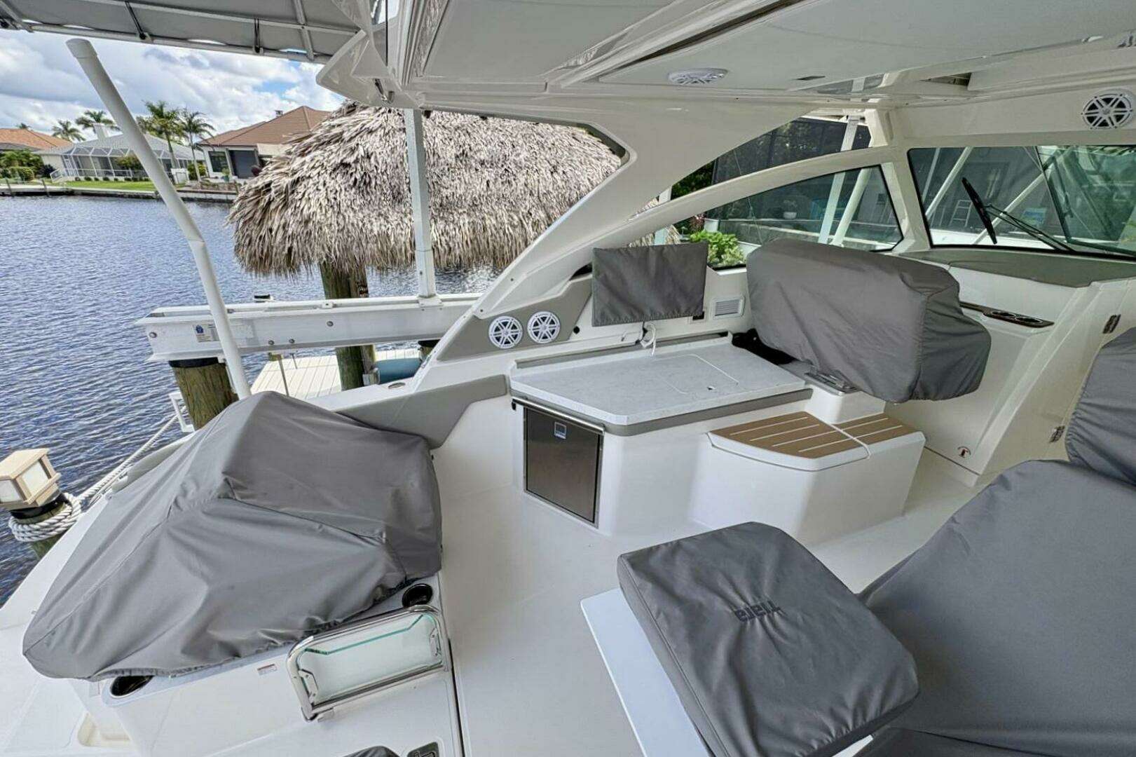 · Designated Storage Location for a 45qt Carry-On Cooler; Tiara Yachts Branded Yeti Tundra 45 Cooler Included