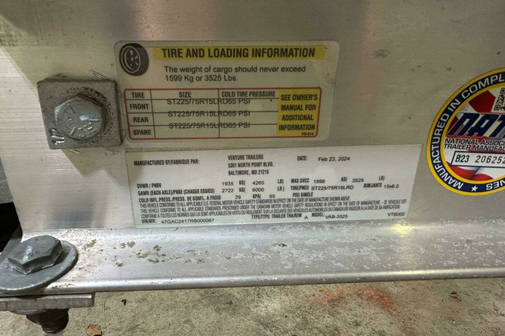 - 2024 Venture aluminum trailer with spare tire