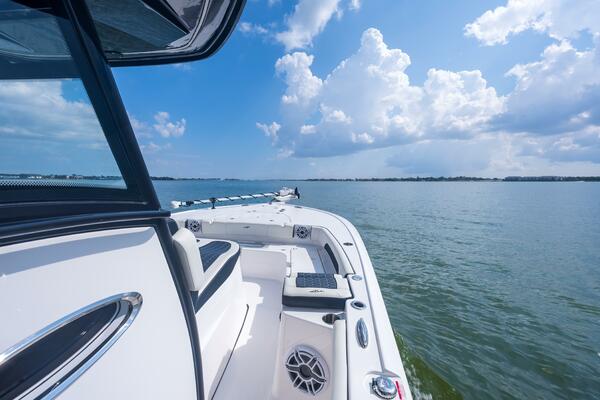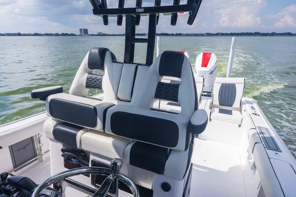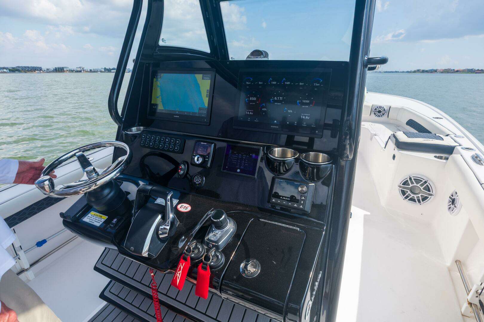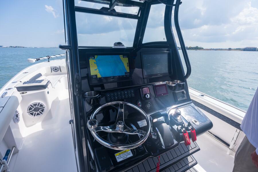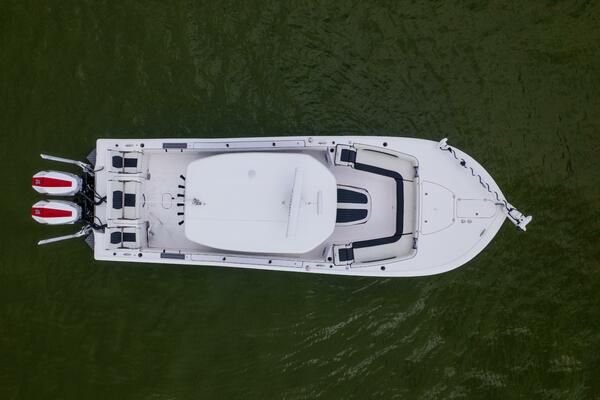 The ultimate hybrid bay boat—built for serious anglers and luxury-minded boaters alike. Powered by twin Mercury 400 V10 Racing engines with just 60 hours and factory warranty through August 2027, it offers speed, and smooth handling with the peace of mind of a transferable warranty.
