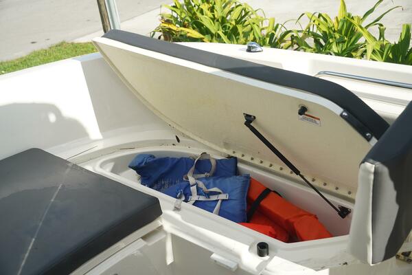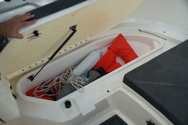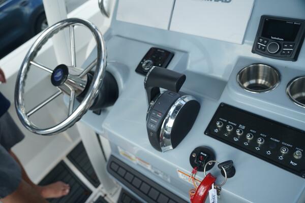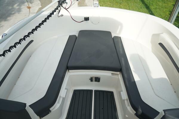 - Fishing & Convenience: Gunnel rod holders (4), 40-gallon livewell, anchor roller, portable head, stainless steel upgrade package, cockpit table, and self-bailing cockpit for easy cleanup.