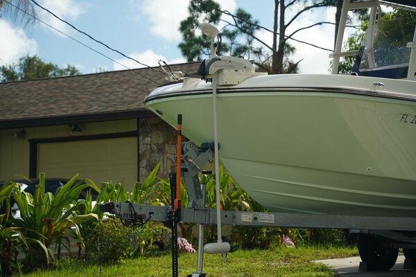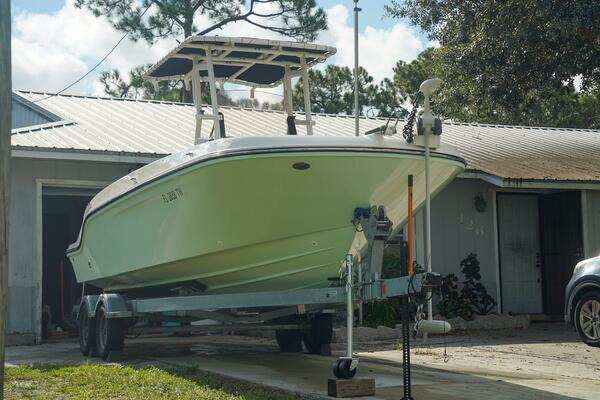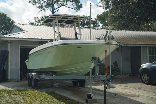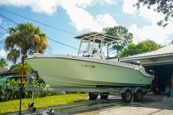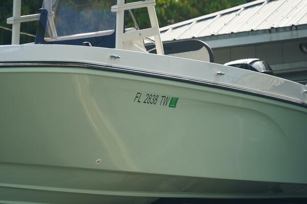 Broad bow for casting or lounging, comfortable aft bench, dry-riding interior, and enclosed head ensure enjoyable runs to fishing spots or waterfront dining. With only 27 hours, this fully optioned rarity is ready for big-water adventures. Comes with dual-axle Galvanized Karavan trailer.