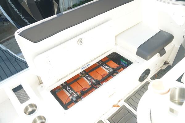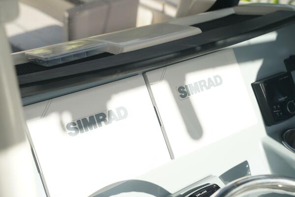 - Helm & Electronics: Twin Simrad 9" digital dashes ($4,285) integrate seamlessly with a custom 200AH @ 36V, 112 lb thrust electric trolling motor Spot Lock system—uniquely fully controllable via the dual touchscreens for hands-free precision fishing. Silently troll on electric power for 12+ hours @5mph.