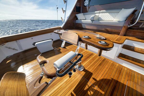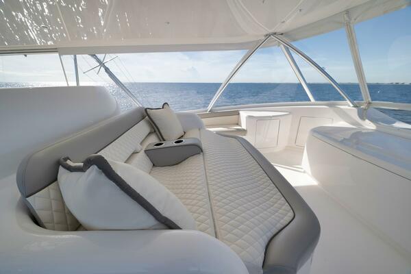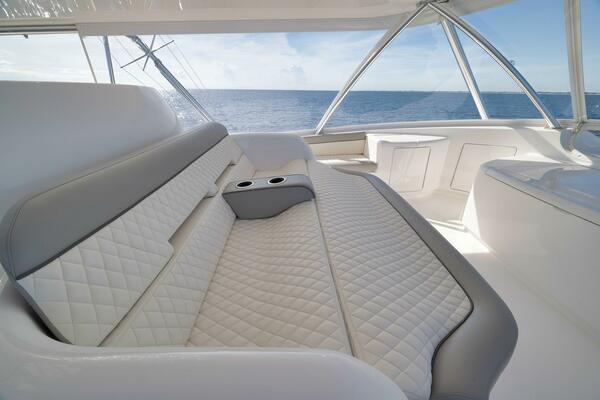 - Flybridge full lounger forward of the helm console with A/C in seat back