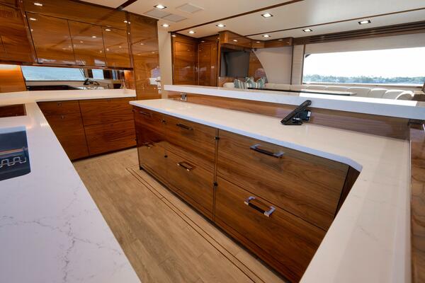 The 2024 80’ Viking Convertible, “Baileys Ark,” is a meticulously maintained and highly customized vessel with exceptional care since new. Powered by twin MTU 2000 Series V16 M96L engines producing 2635 horsepower, with only 1370 hours, and backed by an MTU warranty. She features a five-stateroom, five-head layout, including a forward island queen bed and an additional berth in the forward pantry. The interior boasts Prestige and Elite Galley packages, a U-shaped salon lounge and elegant horizontal walnut finishes. Demonstrating significant input from the Viking demo team during construction, she is an exceptional example of craftsmanship and customization. She is available for viewing in Palm Beach during the Fort Lauderdale boat show.