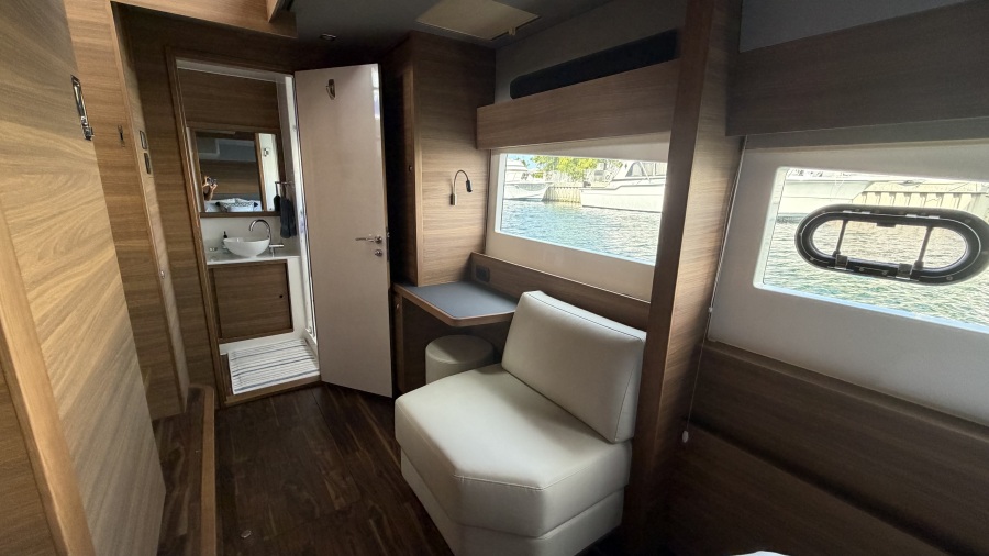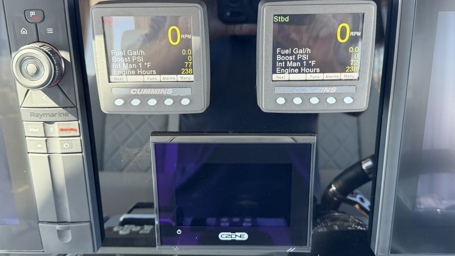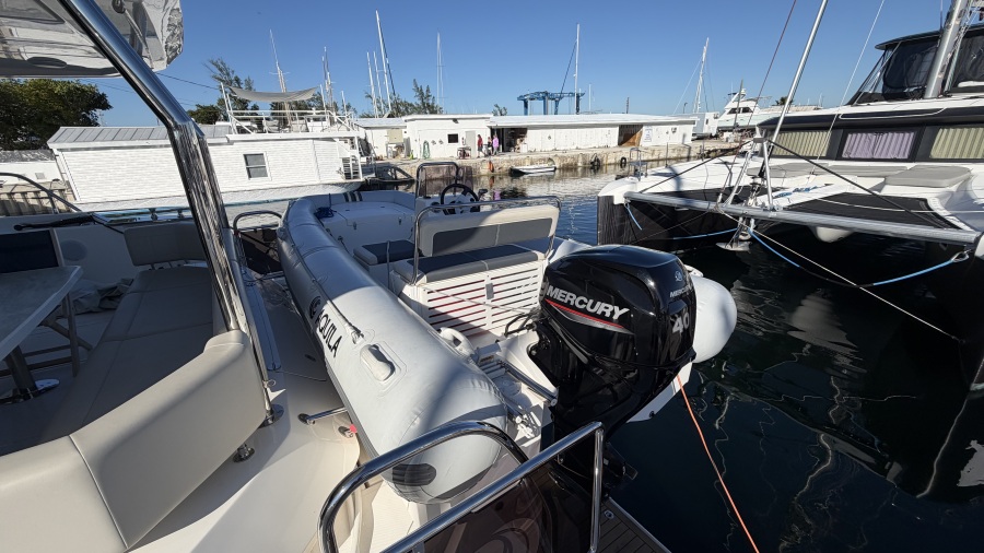 This 2025 Aquila 54' Enclosed Bridge Yacht just hit the open market and is ready for her next owner. She is powered by Up Graded Cummins QSB6.7 Diesel twin 550 hp engines with only 238 hours and also has a Kohler upgraded diesel 21 KW diesel generator. She also has an Aquila Cat 14' RIB Sport Console dindy with a 40 hp four stroke Mercury OB engine with electric start. She has a 4 Cabib/4 Head lay-out. She has upgraded covered accented wall & ceiling upholstery. She has a fully upgraded enclosed Flybridge Sky Lounge with upgraded Funiture, upholstery & fabric to match the salon, aft sliding door, side access door with additional access from interior stainless steel stairway from salon in lieu of open fly bridge. Electric sliding hatches (2) on flybridge. Electric retracting canvas shade system integrated into the aft section of the hard top. Electric BBQ & 65 l. fridge on flybridge, Ice maker at wet baron flybridge. 32" flip down TV Mount on flybridge, Upgraded Flybridge Captain chairs (2), super large deck walkways, (4) underwater lights, she comes with upgraded Dockmate Wireless Control system, Starlink for Maritime, upgraded3" Matteress toppers for all beds, Very Comfortable, Sirius XM,Fendertex Fenders, (2) 50A shore power Extensions 50' long, Water Maker, Spare parts & and filters, All Maintenance up to date on Engines and generator with records, Transferrable Extended warranty. Don't miss this one.