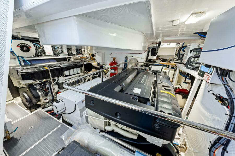 A select list of features includes: Seakeeper 18, Volvo Dock Assist with integrated thruster, Watermaker, Custom master layout with King Berth, FLIR HD, ElectroSea ClearLine system, DockMate Remote Control Docking, Custom Boarding Ladder and ramps (3), Satellite Weather, Starlink Internet with Network, Siren Marine Security and Vessel Management, IPad connectivity to CZone while aboard, and much more. For a full list of standard features, optional features, and custom features, please see additional descriptions below and in full specifications.