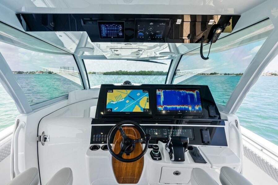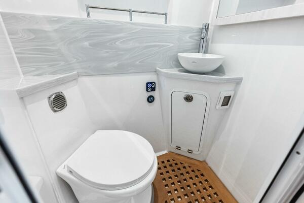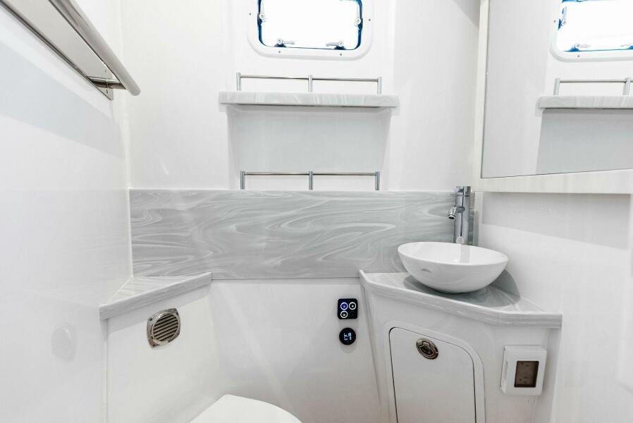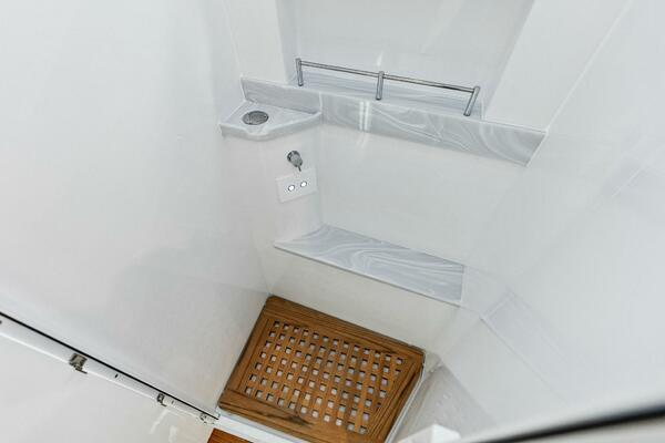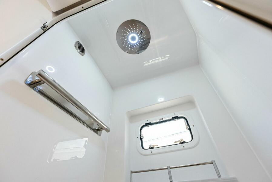 Step into the cabin and experience true comfort at sea. Luxurious finishes, climate-controlled interiors, a full galley, and a private enclosed head with shower provide all the amenities of a high-end yacht.