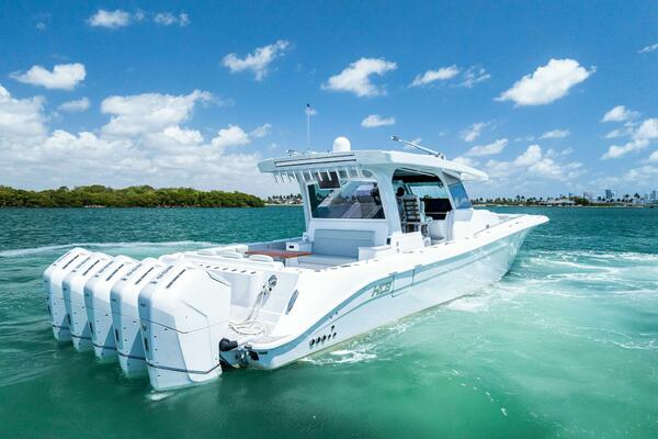 The 2025 Suenos GIX 56 HCB is a remarkable achievement in luxury offshore performance, designed for those who demand power, precision, and elegance on the water. This brand-new vessel is equipped with five Mercury V12 Verado outboard engines, delivering an astonishing level of horsepower, torque, and efficiency. Together, these advanced engines ensure unmatched speed, smooth handling, and quiet operation, making long-distance cruising or high-speed pursuits effortless and exhilarating.
