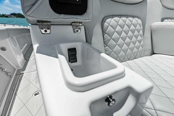 - Transom Seat with Dual 25 Gallon Baitwell and Molded Arm Rests