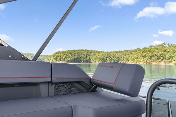 No trailer is included in this price. This 1 owner Freshwater 2024 Manitou 22 Explore Max Bench is a 25-foot, 11-person capacity tritoon boat with a 150 HP Rotax S150XF engine, featuring a dry weight of 3,532 lbs, a 8.5 ft beam, and 13 cupholders, along with a Garmin display, Fusion stereo, and dig