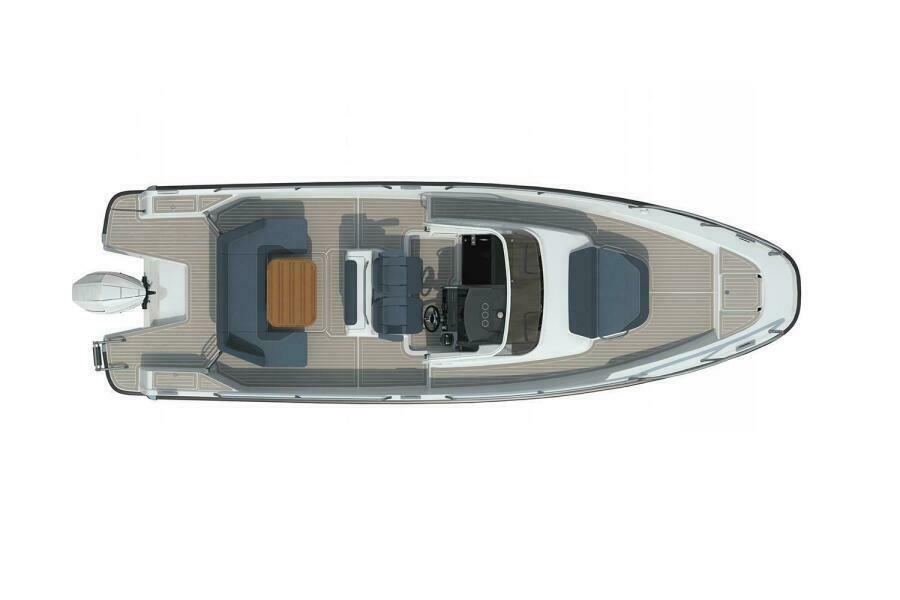 The T9 is equipped with single or twin Mercury outboard engines. The aft deck u-sofa with seating for 5 easily converts to a sunbed. There is an option for a wet bar with a hand basin and portable Weber LPG grill behind the helm seat. The module also functions as support while on the water or in port. The boat is available with three different canopy solutions – harbor cover, spray hood, or as a T-top design. The helm can be equipped with single 9″, 12″, 16″, or twin 12″ chart plotters. The foredeck features a large loading hatch with access to the cabin as well as an optional daybed which creates an extra seating area that seats 4 people with a table or extended sunbed. One smart way to make the most of the aft deck area is spare railing cushions that can be placed on the railing, offering both extra seating and a cozier atmosphere. Below deck is a large berth for two with integrated ventilation, ample stowage and separate head with sink.