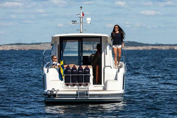 The most important attribute on the 305 is the hull, which has been developed and optimized for speeds from 0 to 22 knots. The hull is designed to suit smaller engines such as the Volvo Penta D3 and the fully-electric Torqeedo, and built to run comfortably irrespective of speed. The hydro-dynamic shape of the hull means that the boat has no planing threshold at all.