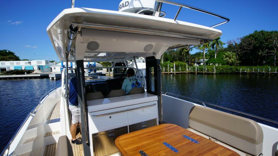 At just over 40 feet, the Tender 11 is Nimbus’ vision of the perfect day boat. She perfects easy living on the water, providing an innovative social environment for friends and family to gather and relax. This means a large lounge area with adjustable seating and dining configurations, multiple sun beds, an outdoor galley for entertaining, gyro stabilization, vast storage for gear and water toys, and an impressive amount of deck space, which allows for an overwhelming freedom of movement. With a wide range of engine options and thanks to a stepped hull design, you can cruise comfortably with speeds anywhere between 20 and 40 knots on board this Nimbus Tender 11. The T11 from Nimbus Boats is not just a spacious and stylish vessel; it was crafted for long-distance comfort. This 40-foot boat for sale excels in entertainment with its lounge area, which offers additional space for social gatherings on board and can adapt to any occasion. The Nimbus Tender 11 is an adaptable day boat that can be used for full days on the water spent with family and friends.
