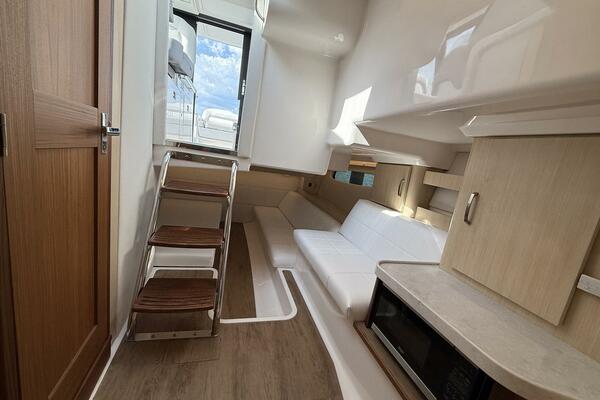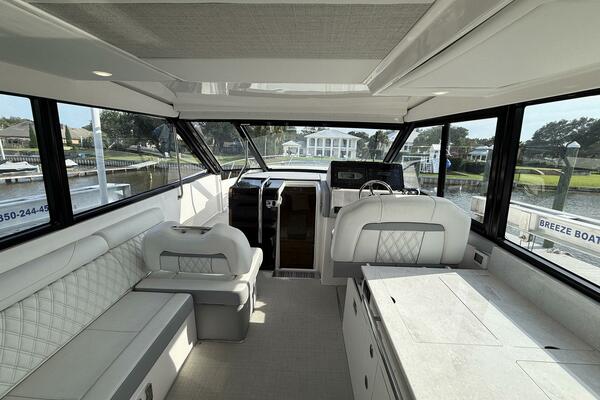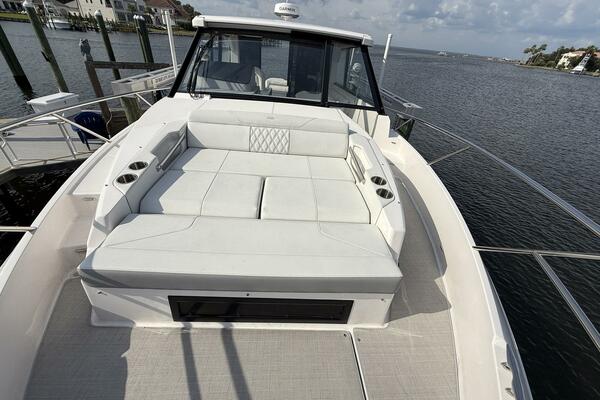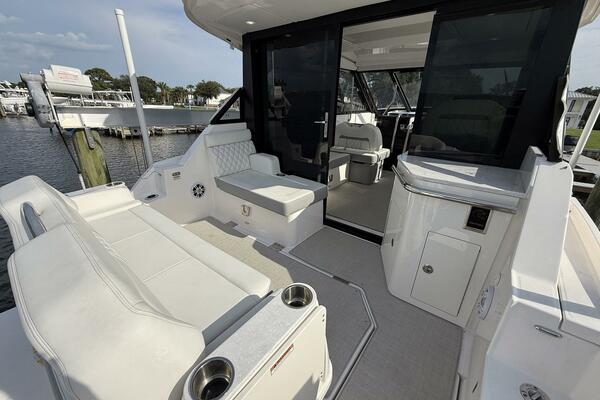 The upper salon opens up to the aft cockpit area for a lager entertaining experience. The aft seating retracts to give more room as well.