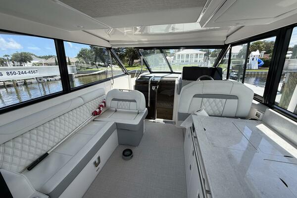 This lightly used Regal 36 XO with 64 hours on the twin Yamaha XF450NSA2's boasting an incredible 900 horsepower is suitable for any activity. The speed and agility of this Yacht will get you to your destination quickly. Get some sun in the oversized bow seating, enjoy the air conditioning in the large upper salon space or enjoy some down time with the large California Queen and spacious settee down below. This yacht offers an elegant walk-in-shower as well.