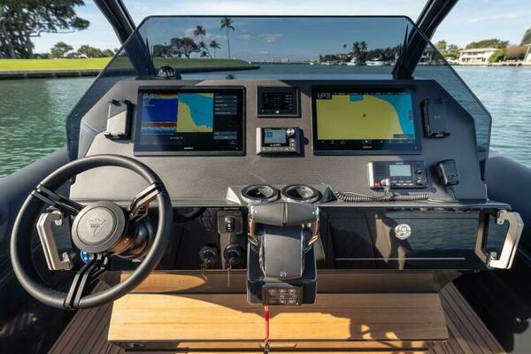 Dual Garmin 8416xsv displays, transducer, VHF, and rearview camera ensure you're always in command—whether cruising or docking.