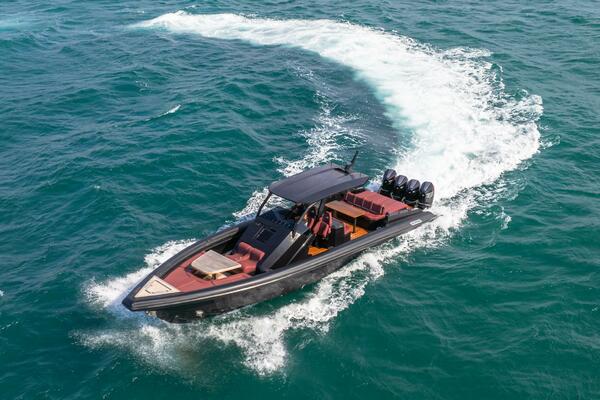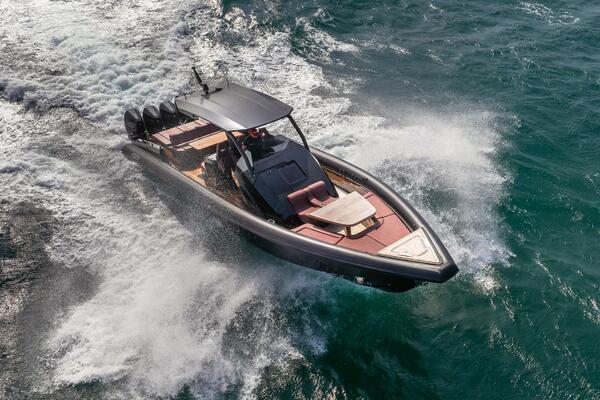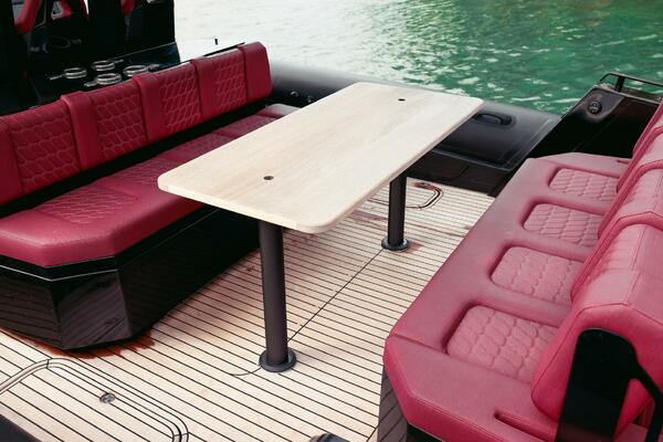 - Colors & Upholstery: Featuring a sophisticated black hull paired with carbon black Orca tubes and luxurious "Acai" Silvertex upholstery, the Skipper 42NC exudes a modern, sleek aesthetic that stands out in any setting.