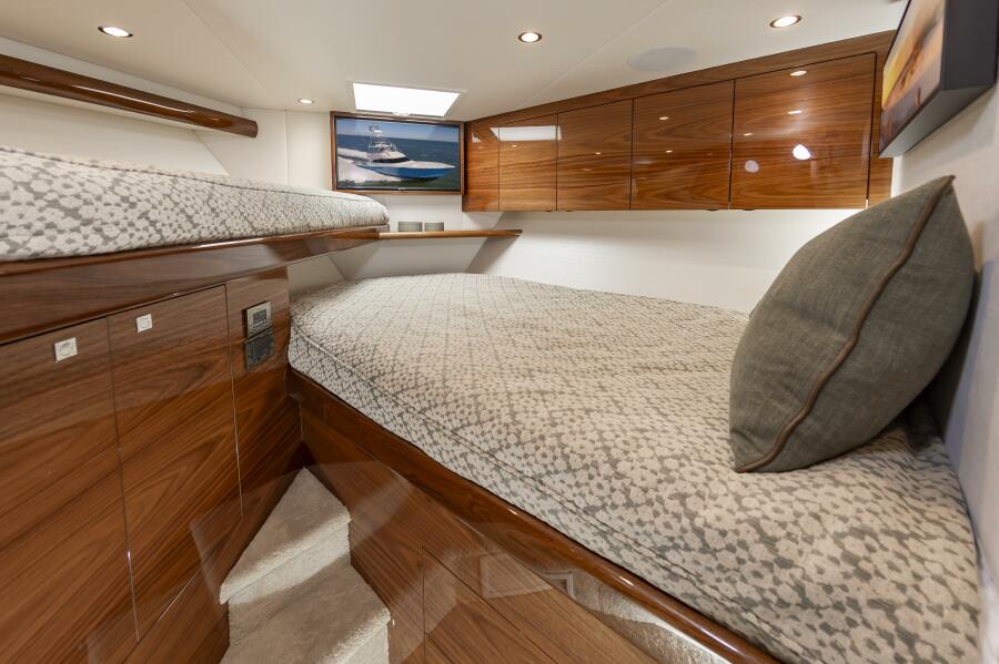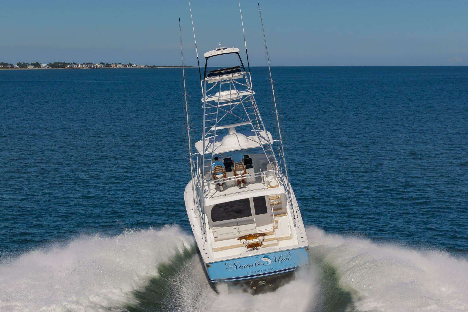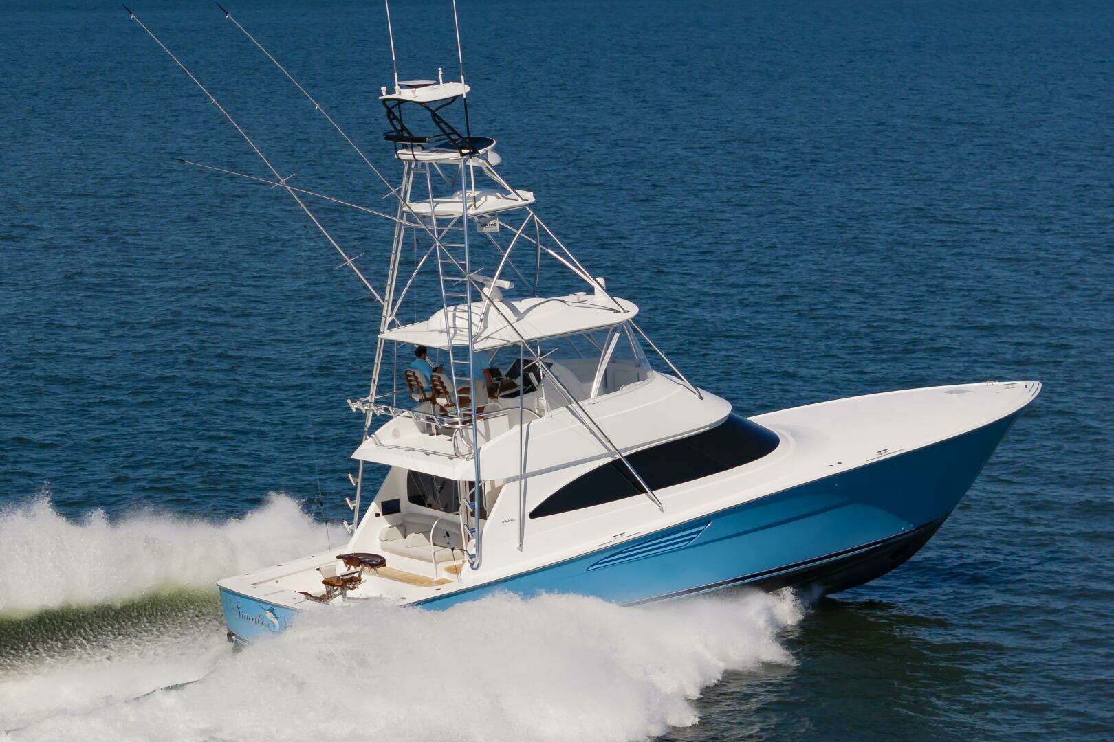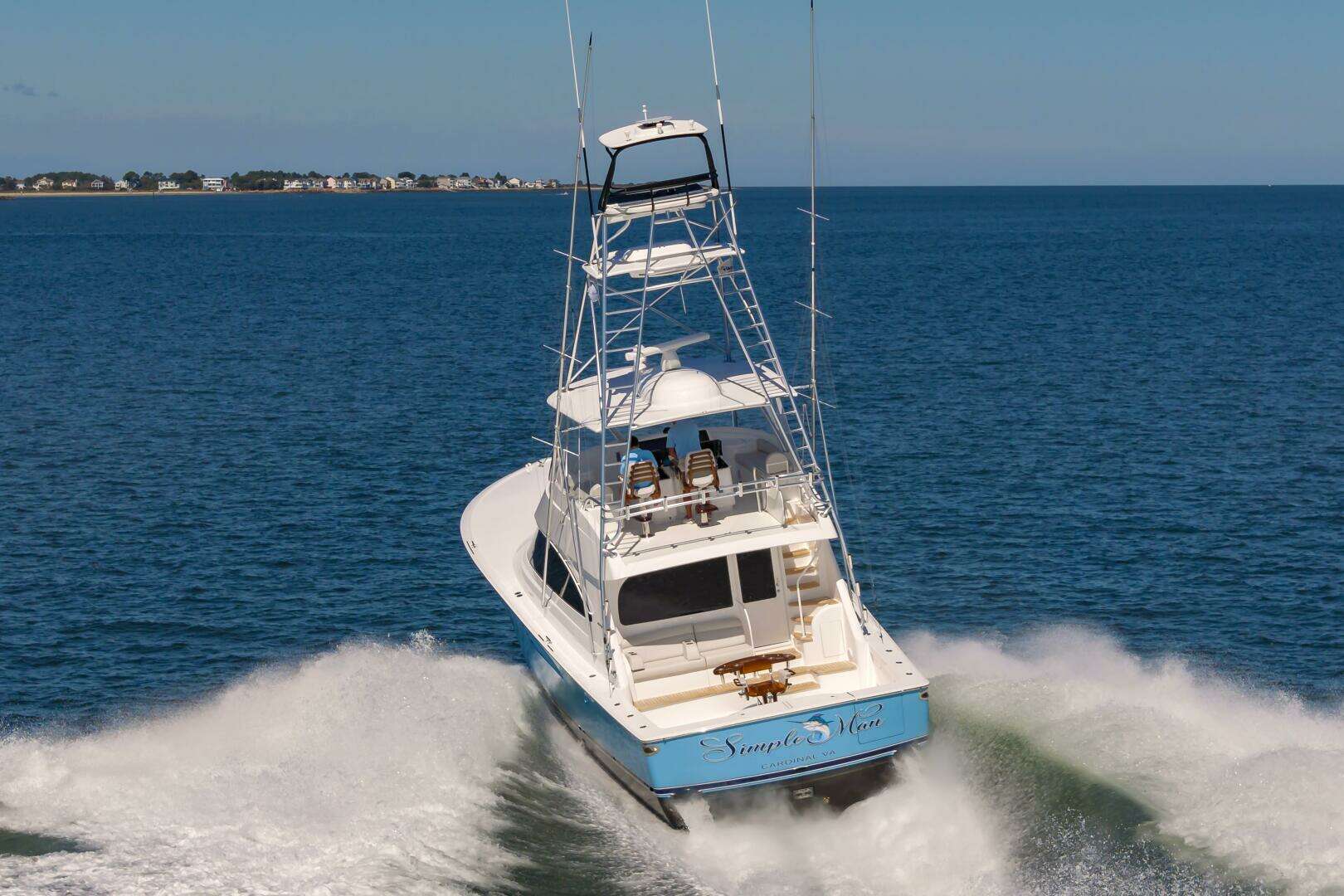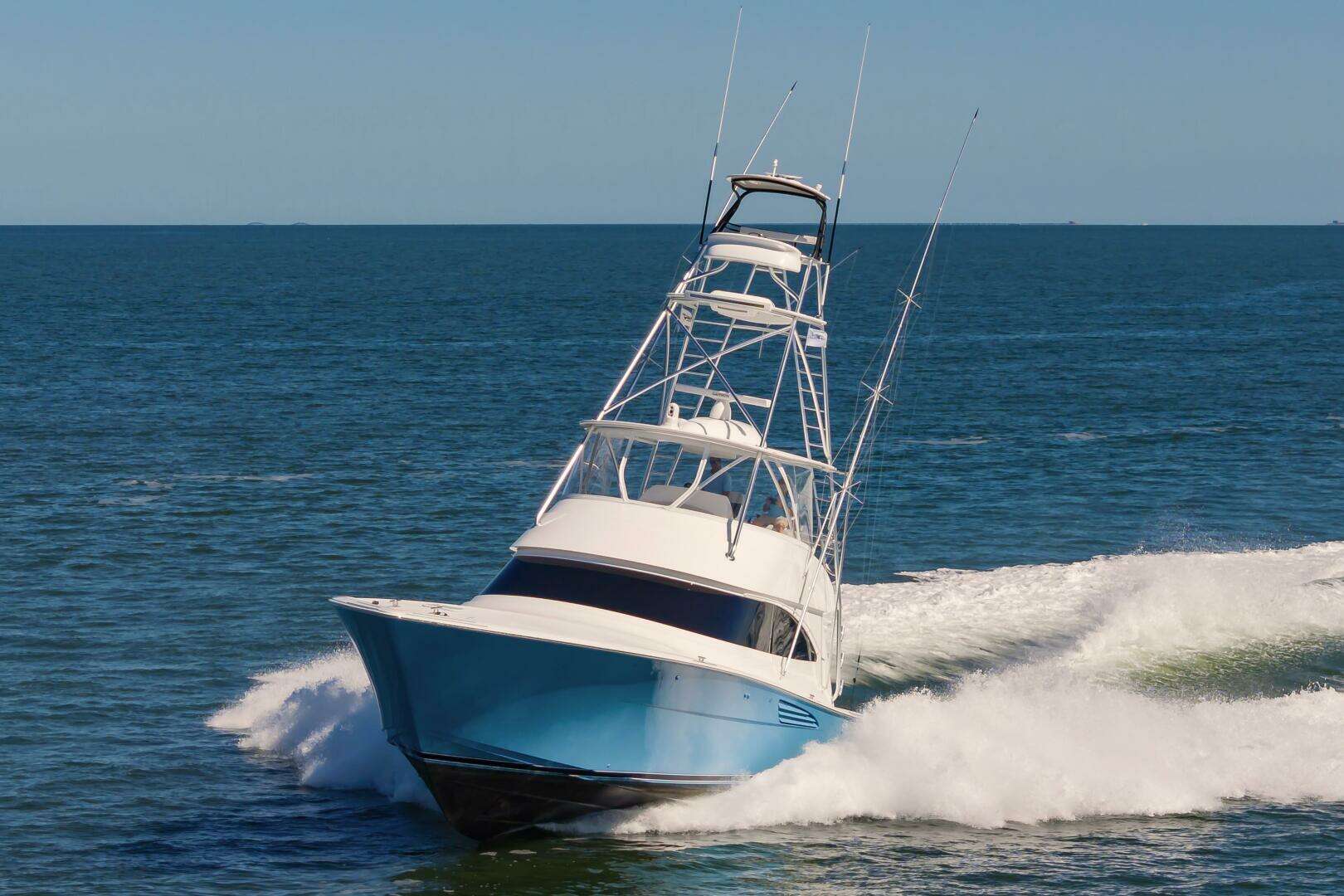 The "Simple Man" is a 2025 58 Convertible with three staterooms and two heads. Notable features include a tricked out Palm Beach Tower, a Complete Electronics package from AME including the Furuno CSH-10: 360 Degree Sonar, and desirable quiet and powerful 10cyl MTU power plant. Listed below below are some of the options which set this boat apart and make it the nicest 58 on the market. This boat has a very soft dry ride and cruises 32kts with a Top Speed of 41.