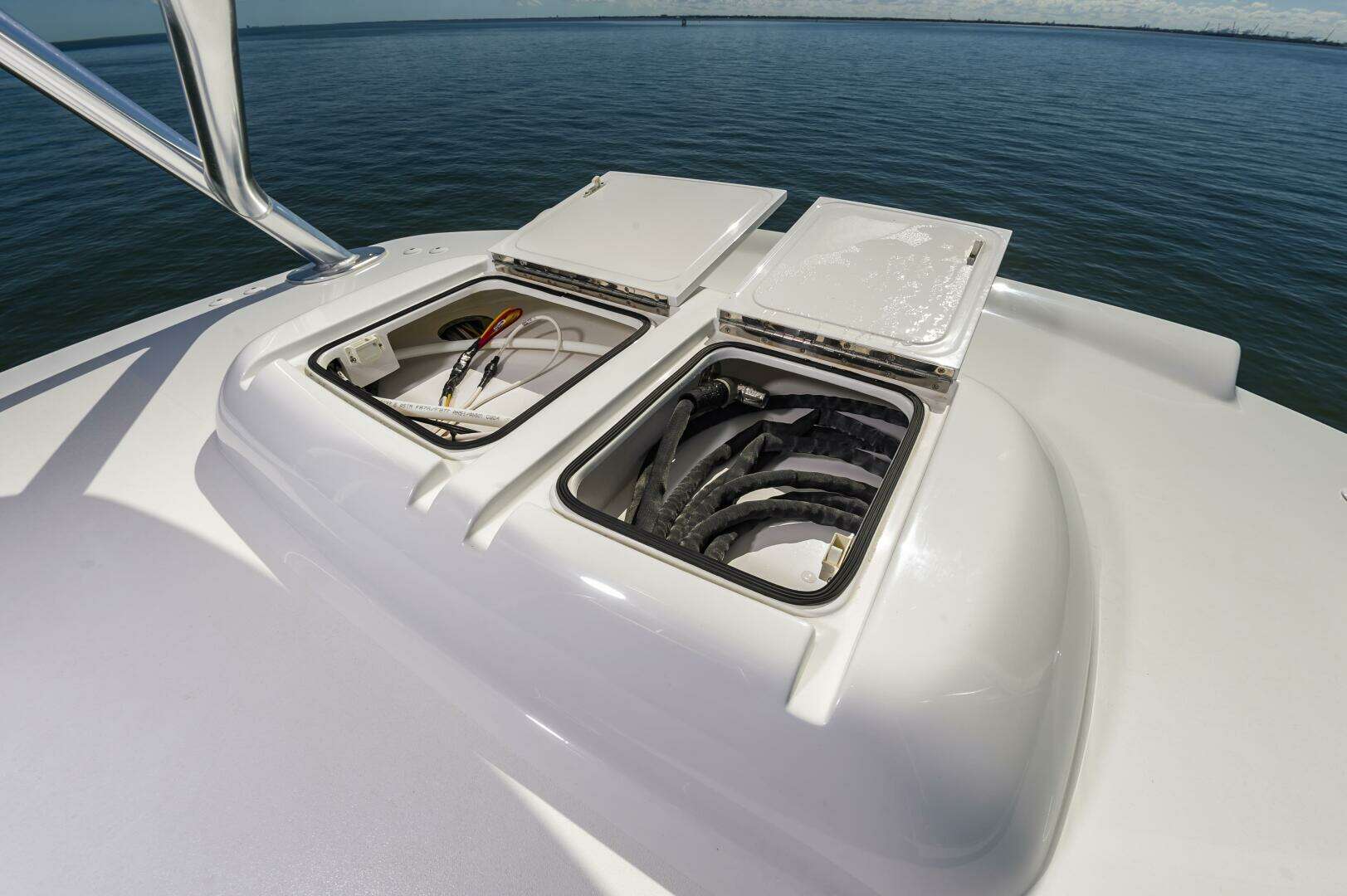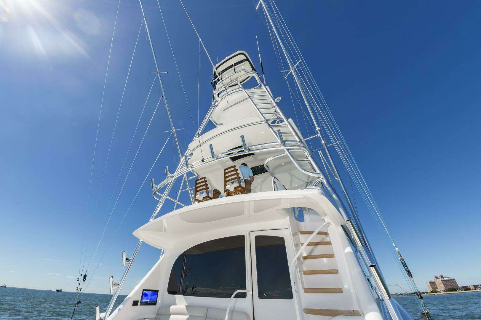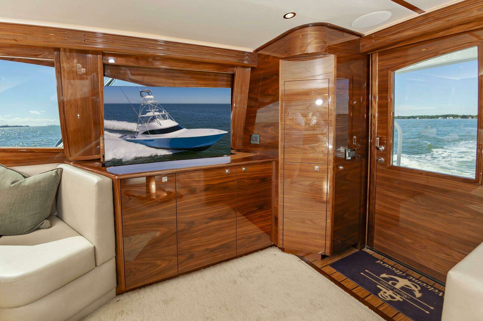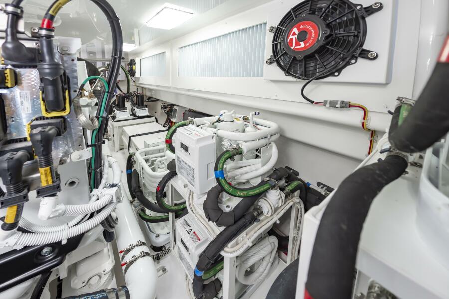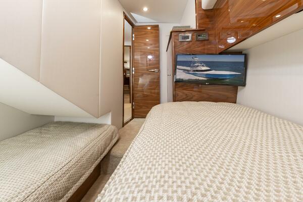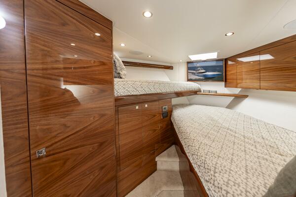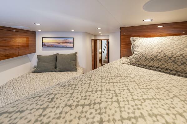 The "Simple Man" is a 2025 58 Convertible with three staterooms and two heads. Notable features include a tricked out Palm Beach Tower, a Complete Electronics package from AME including the Furuno CSH-10: 360 Degree Sonar, and desirable quiet and powerful 10cyl MTU power plant. Listed below below are some of the options which set this boat apart and make it the nicest 58 on the market. This boat has a very soft dry ride and cruises 32kts with a Top Speed of 41.