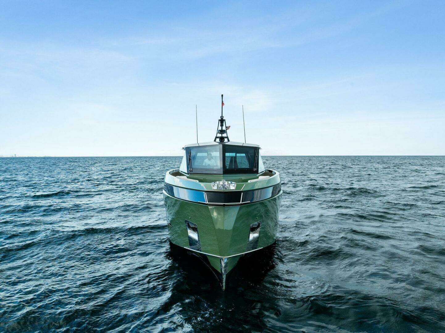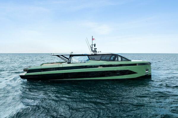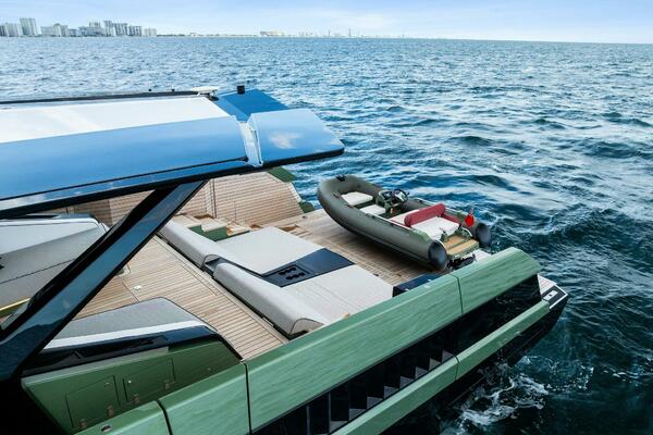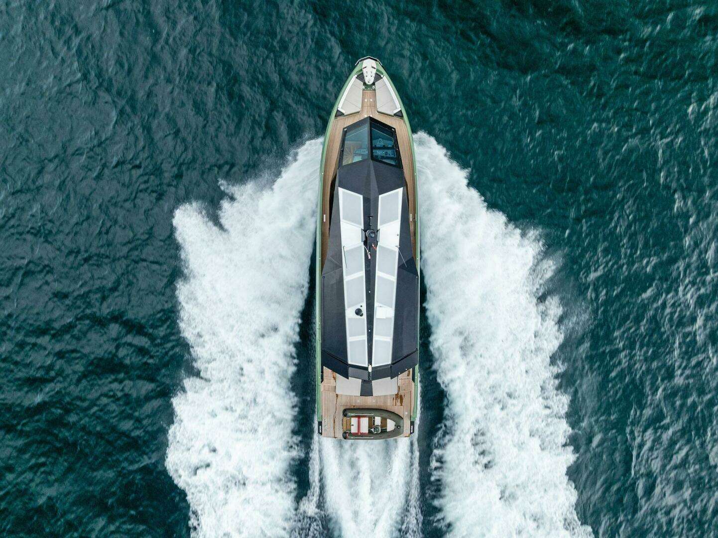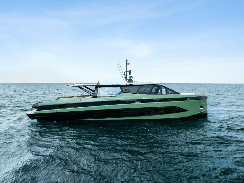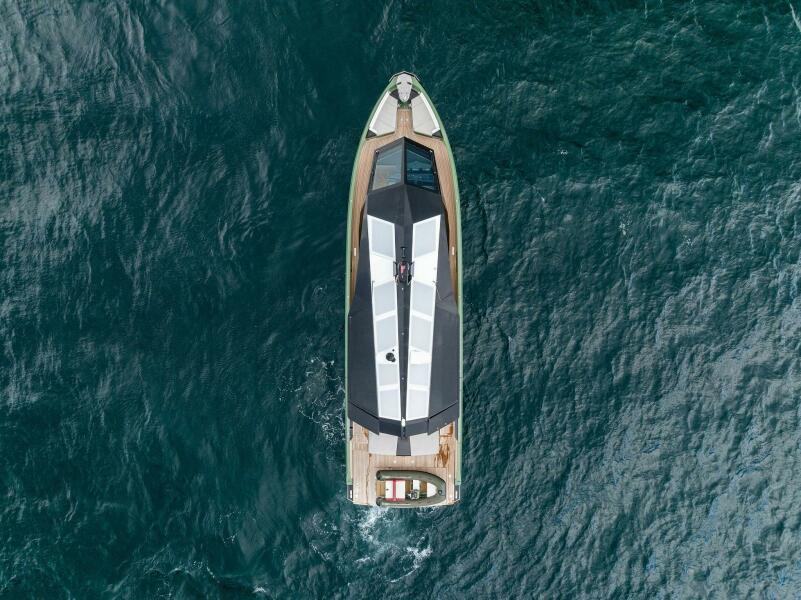 - Built as a crossover yacht, it merges the sleekness of a coupe boat with the volumetric benefits of larger yachts.