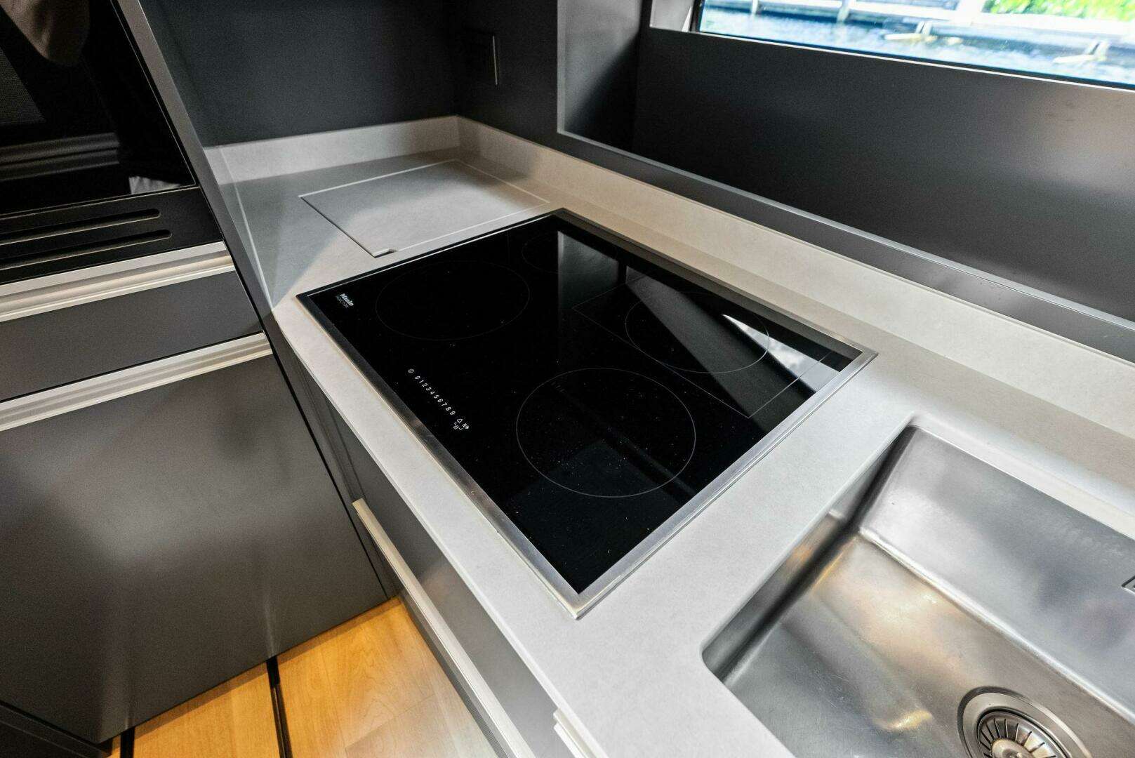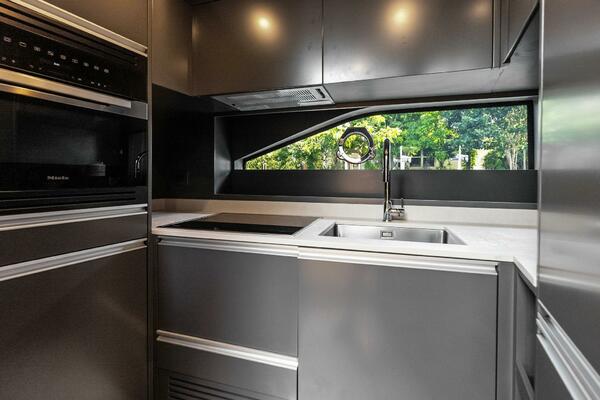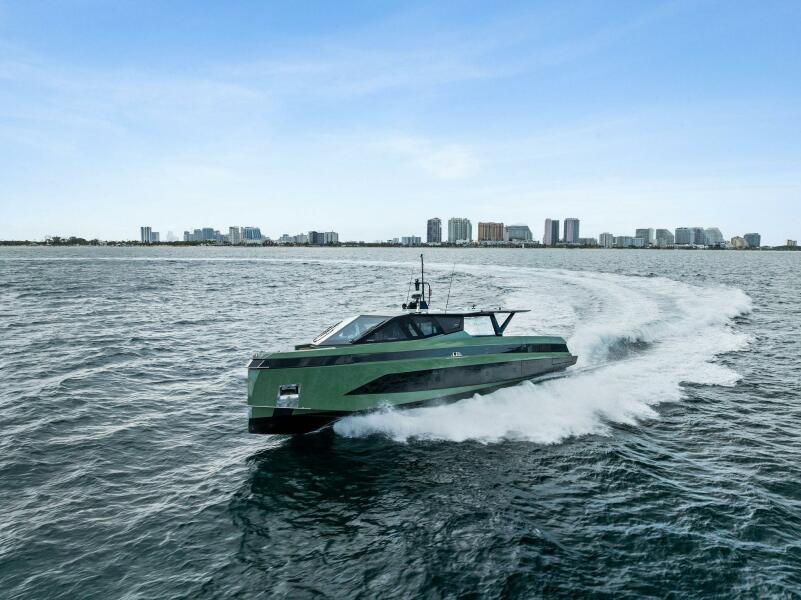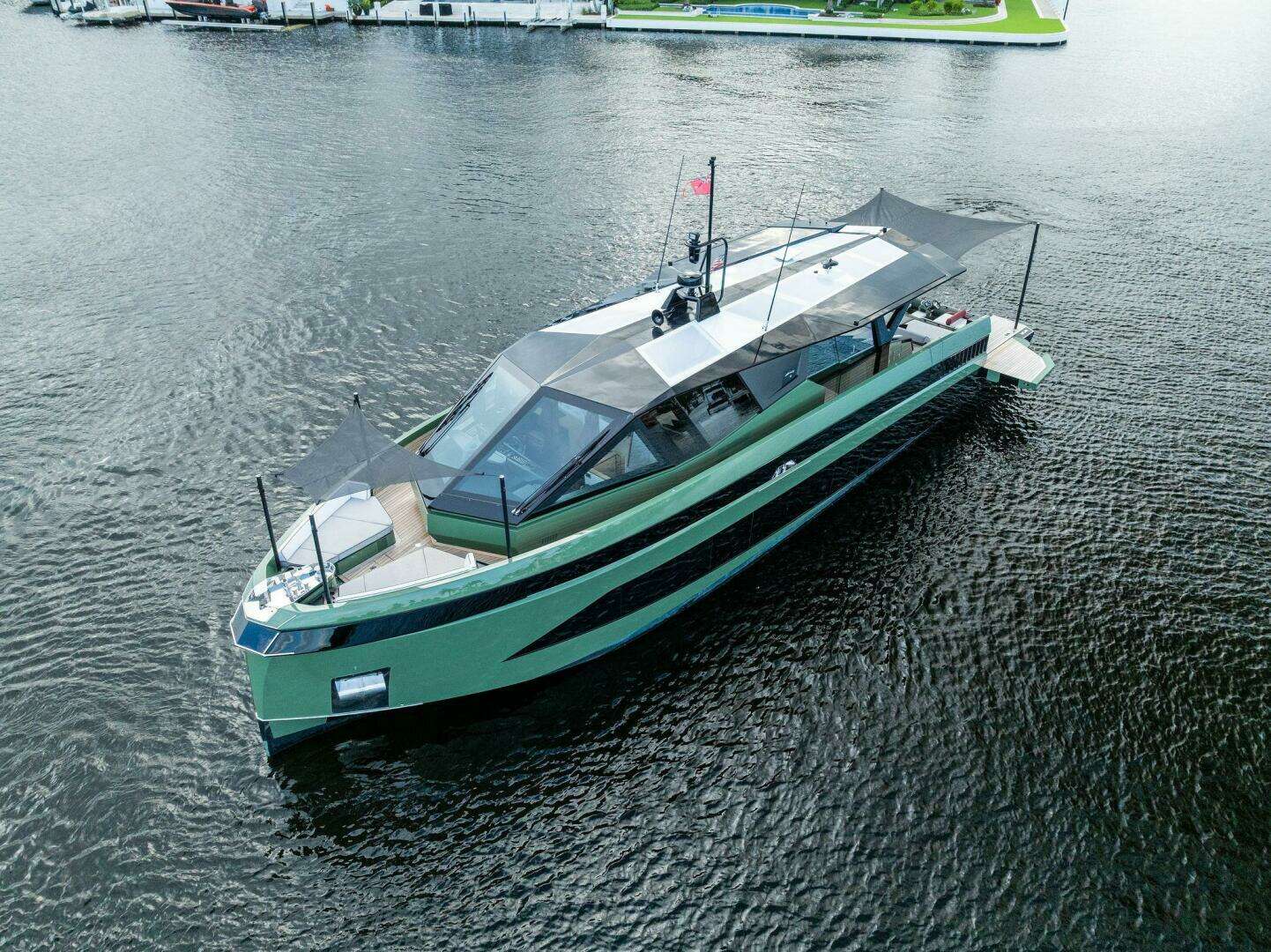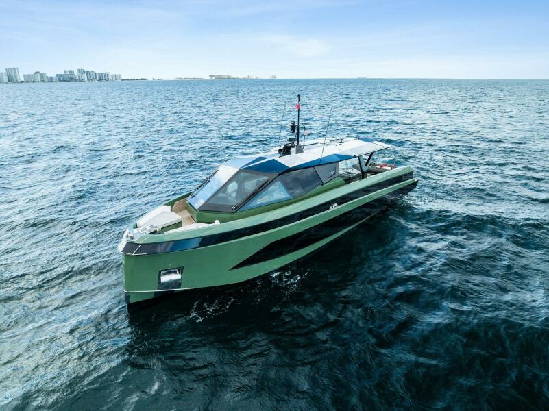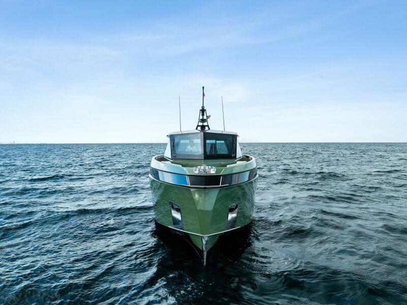 - Built as a crossover yacht, it merges the sleekness of a coupe boat with the volumetric benefits of larger yachts.
