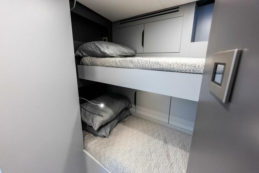 - Two additional guest cabins—a VIP double and a twin—each include their own en-suites and hull portholes.