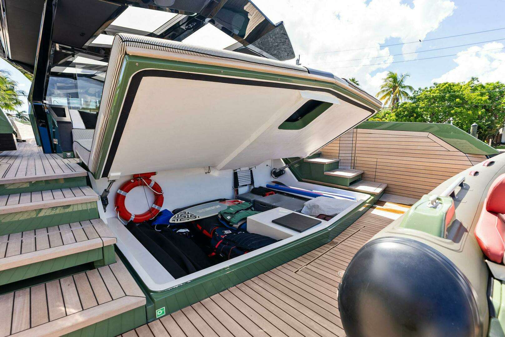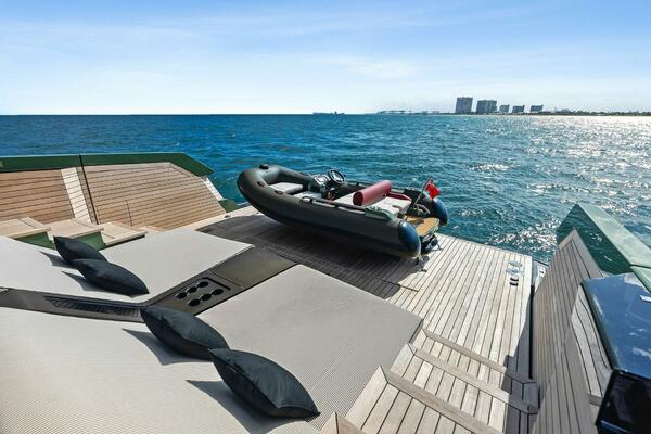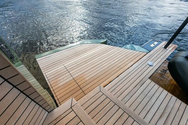 - Equipped with a hydraulic hi-lo platform for launching tenders and toys (up to 3.6 m) and a hydraulic passerelle/swim ladder to easily move between dock, water, and deck.