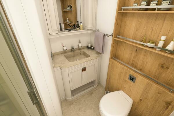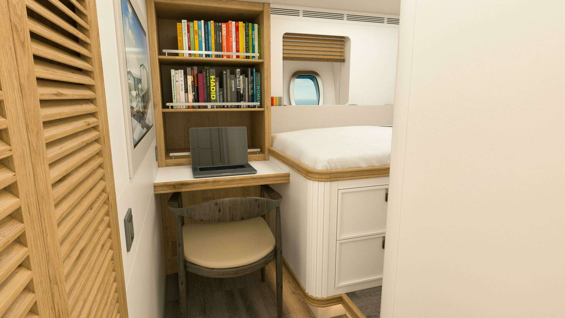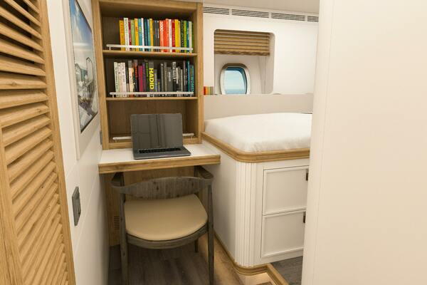 A complete paint system from International and Awlgrip, or equivalent, to be used and followed by the painter’s specification and the manufacturer’s direction. Jotun system to be used for technical areas and tanks.Topcoat paint for hull, superstructure, masts and booms is specified as Awlgrip Light Ivory. If a custom colour is selected, the extra cost will be covered by the Owner. No metallic paints foreseen.