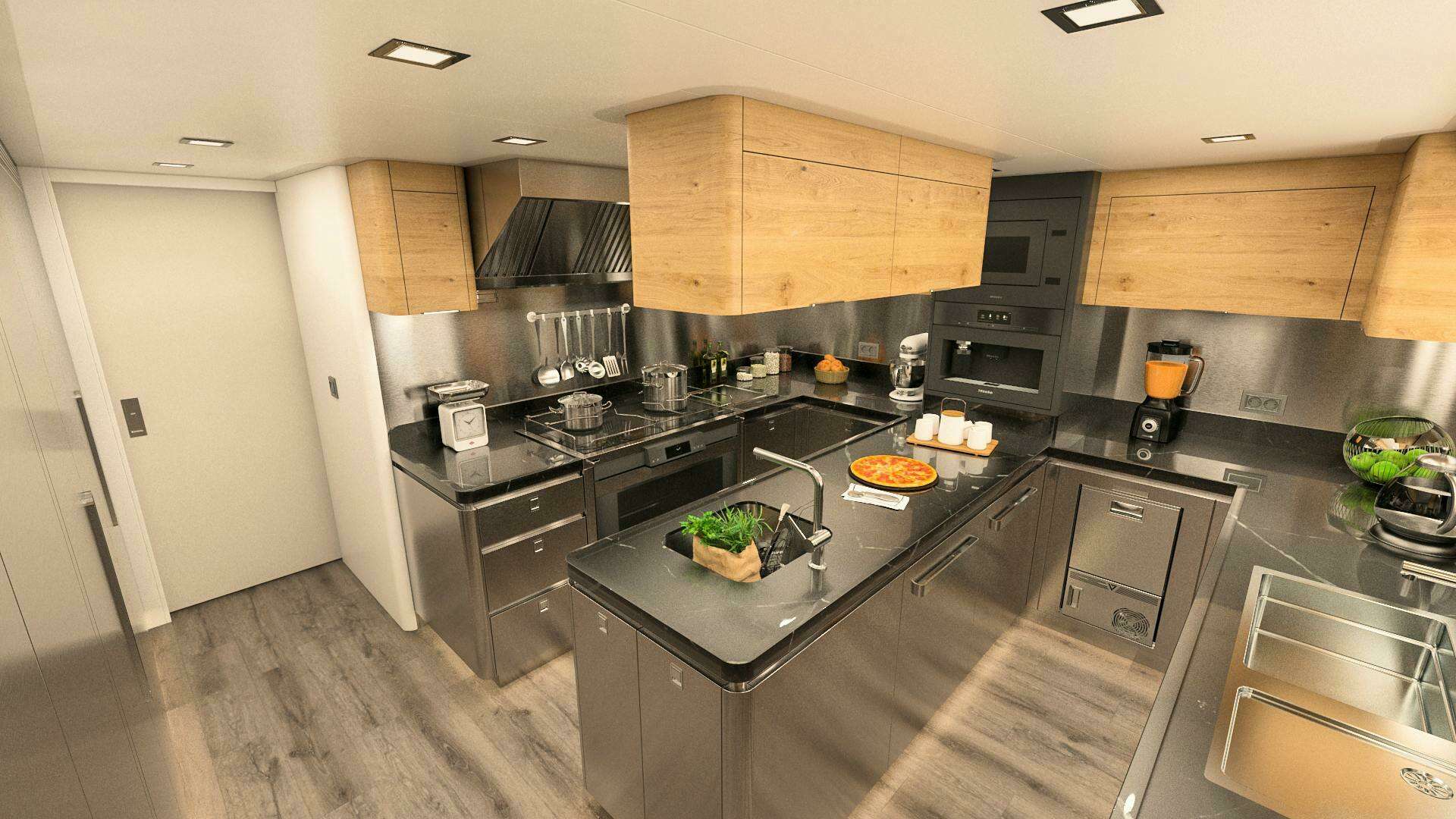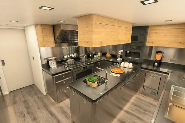 - With a vast 14.000 liters of fresh water tank capacity, the yacht features a robust 15m³/day water maker capacity, providing a continuous and efficient supply of fresh water.