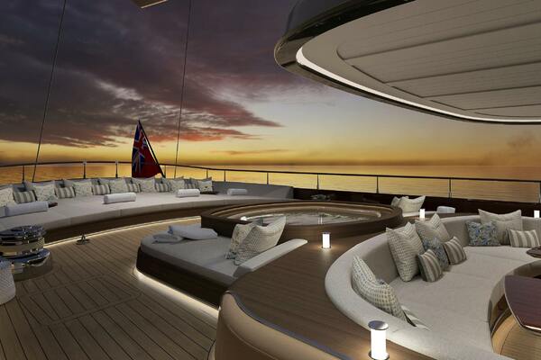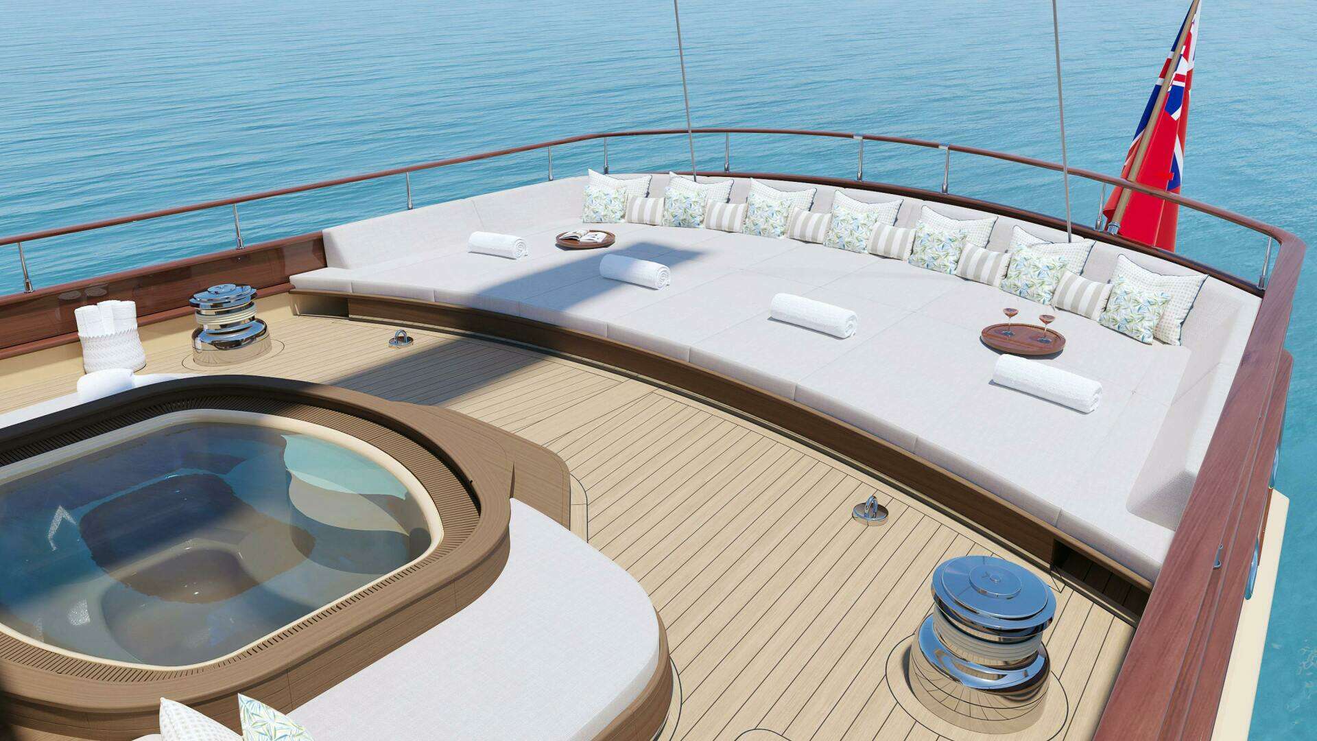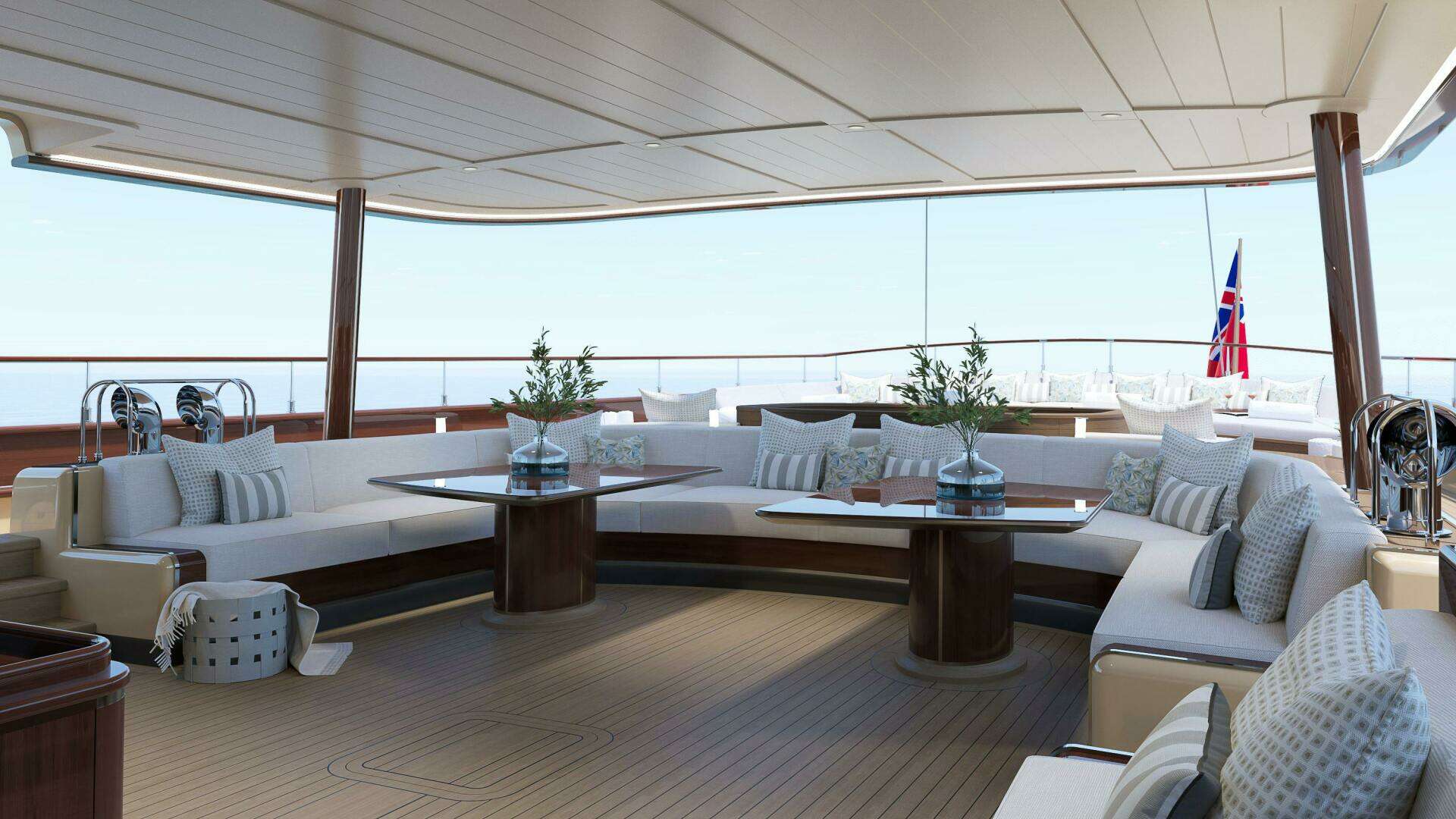 The maindeck aft is tailored for unforgettable social gatherings, providing an exquisite setting for panoramic views.