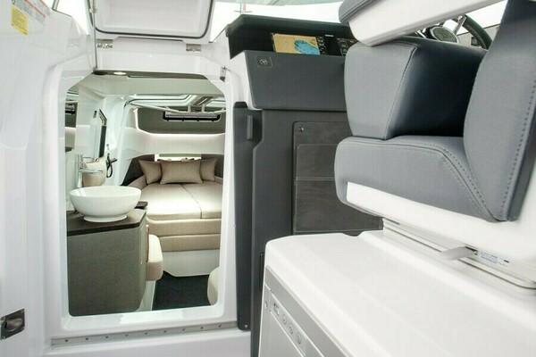 This model combines the functionality, ease of movement, social outdoor and indoor spaces and versatility of outboard walkaround centre-consoles with a spacious, fully enclosed weather proofed cabin, that with distinctive looks challenges traditional perceptions of cabin boats.