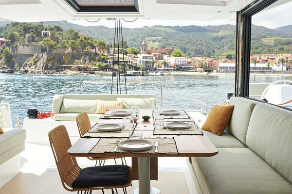 • Twin Helm Stations: Allow for a lower boom and increased sail area. Whether island-hopping in the Caribbean or cruising the Med, the lightweight design and generous sail plan ensure responsive handling and sailing pleasure.