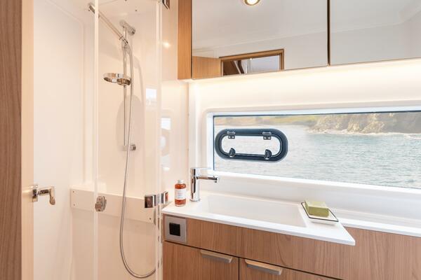 • Seamless Indoor-Outdoor Living: Thanks to Bali’s iconic rigid forward cockpit and tilting “garage” saloon door, enjoy uninterrupted flow from bow to stern, bathing the interior in natural light and ocean breeze.