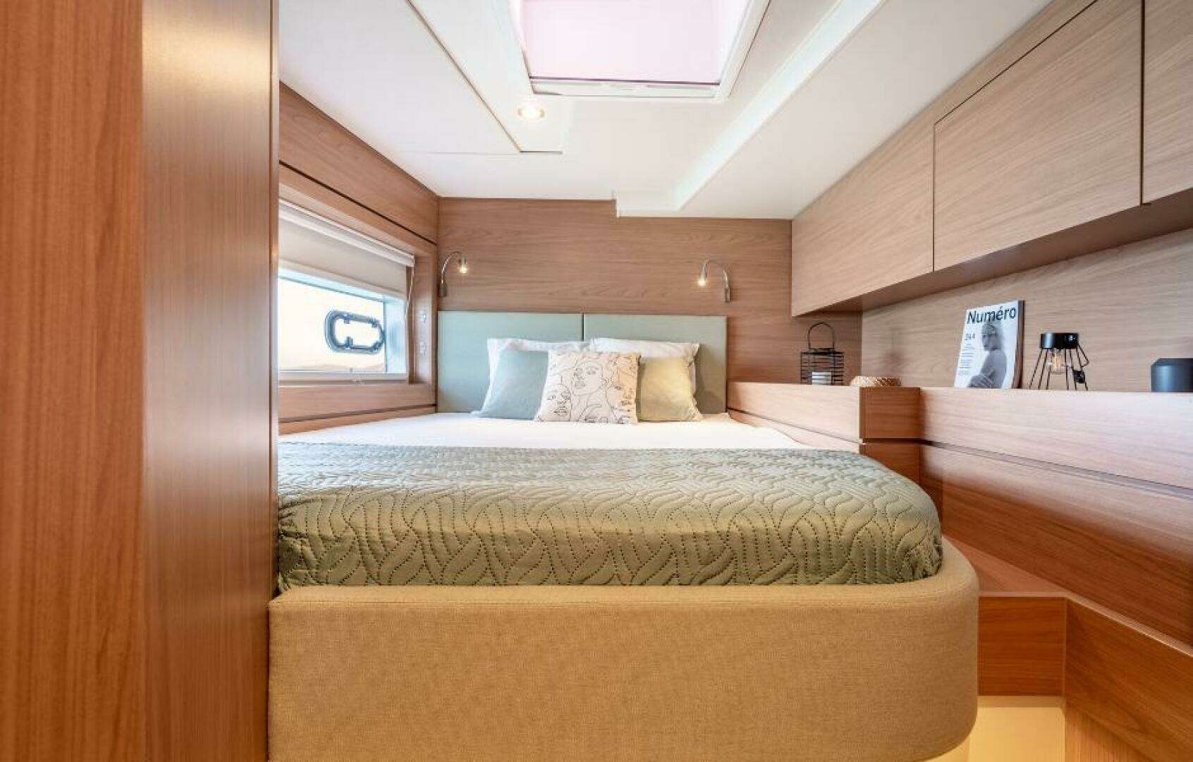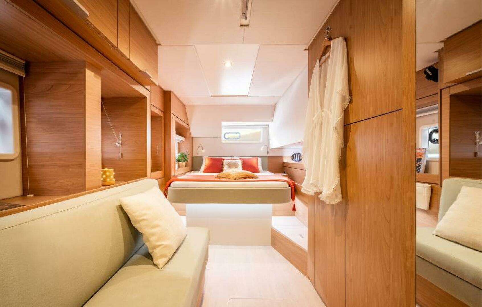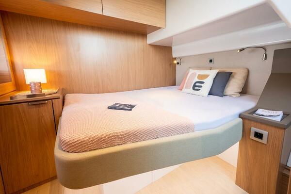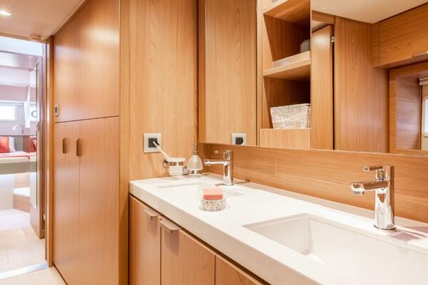 Designed for comfort and privacy, the cabins are stylishly decorated with modern and purified materials and all have their own bathroom with shower and toilet. The rear or midships cabins have independent access through the aft cockpit.