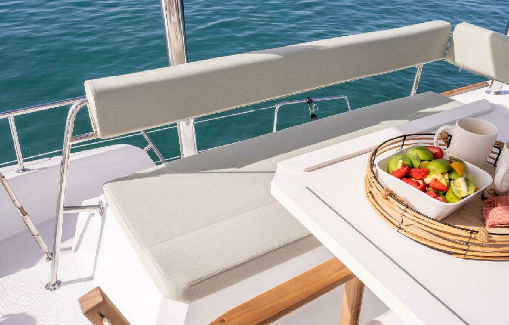 Whether in the forward cockpit or on the flybridge, you have the choice between sunbathing or deck saloon alone or with your friends. BALI Catamarans offer the largest useful surfaces in their categories.