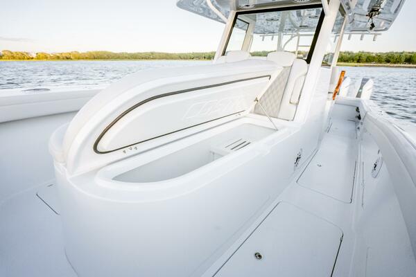 The layout is tailored for the billfishing elite, featuring expanded livewell capacity, integrated tuna tubs, and a removable forward pitch well with quick-disconnect banjo fittings for ultimate versatility.