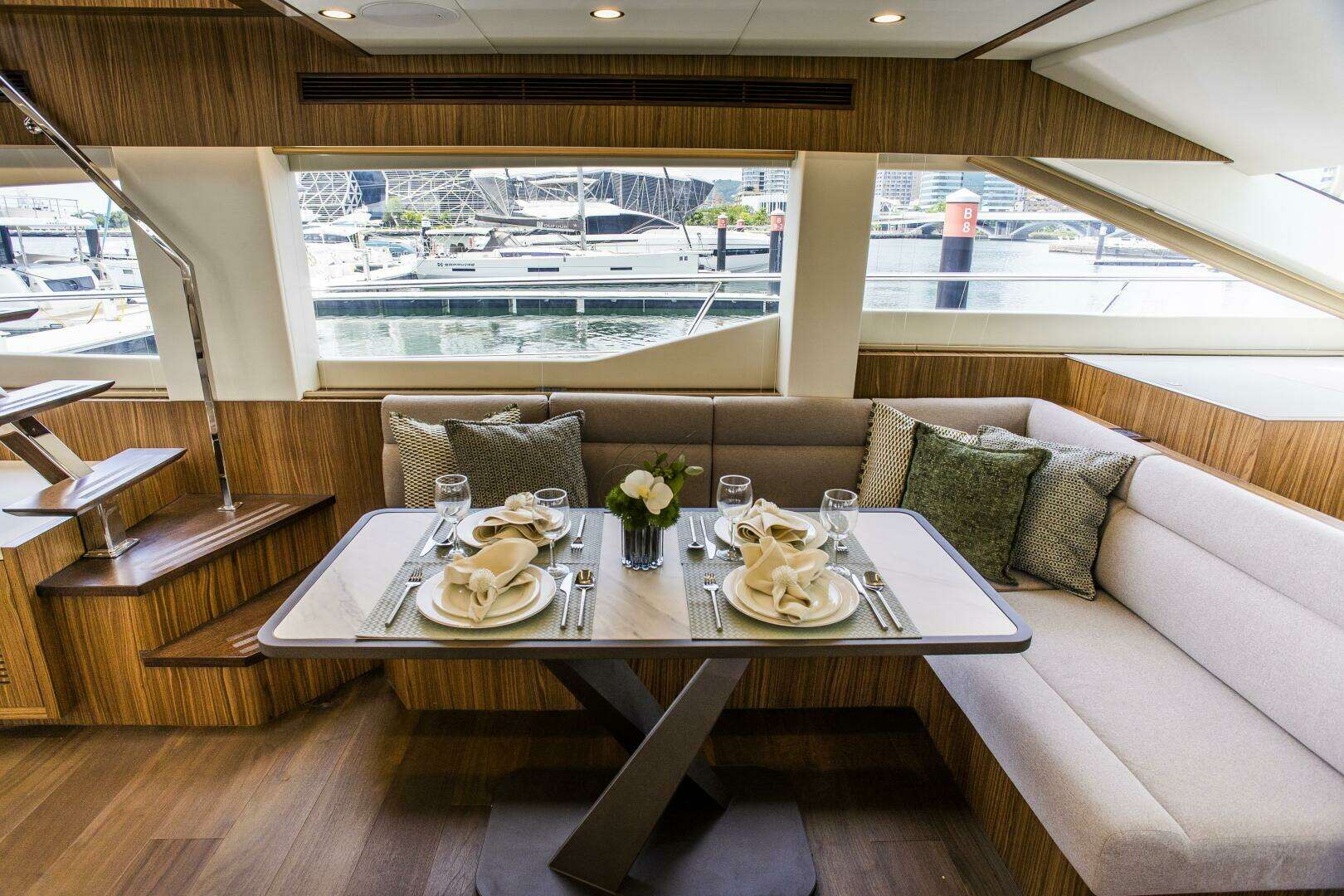 13. Aft deck table wooden table with protective cover. LED low level courtesy lights on side deck