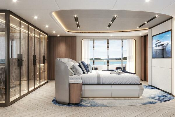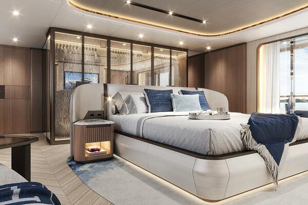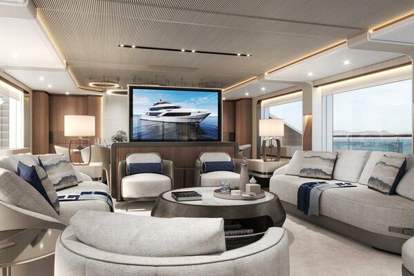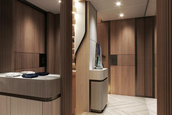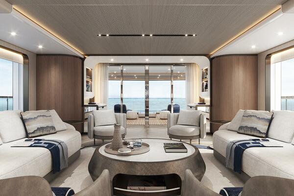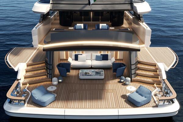 The Majesty 145’s beach club transforms the aft deck into a private retreat, placing guests right at the water's edge. The space is crafted for effortless relaxation, featuring custom sunpads and bespoke lounge furniture tailored to the owner’s vision. A hydraulic Transformer and fold-out terraces extend the beach club’s footprint by more than 40 percent, enhancing the sense of freedom while offering direct access to the sea.