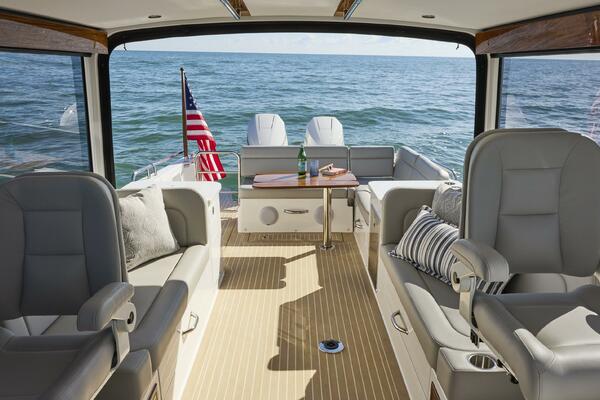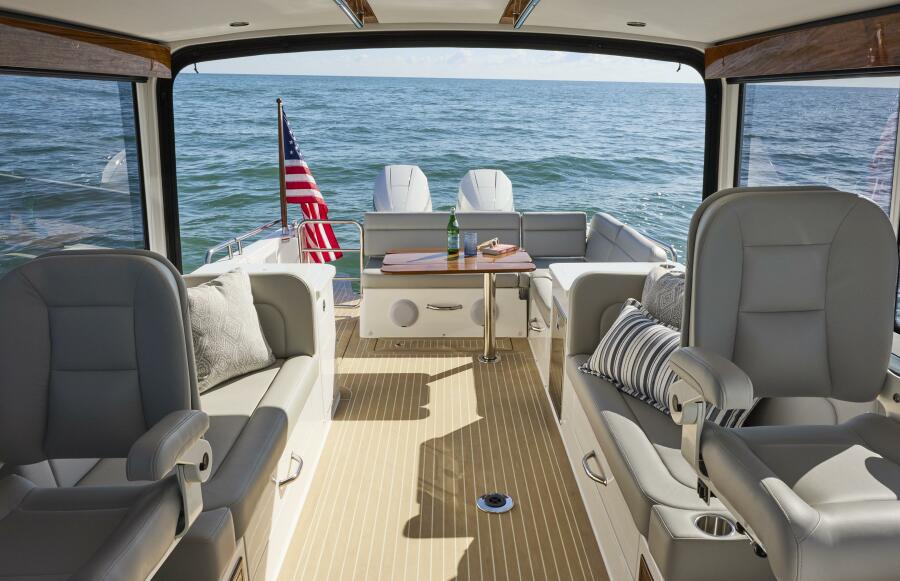Her speed and protection allow you to escape sudden inclement weather comfortably while enjoying breathtaking 360-degree views. Moreover, this protective feature will enable you to embark on your water adventures earlier in the season and extend them later into the year. Prepare to immerse yourself in the unparalleled connection to the water that defines the MJM 38X experience.