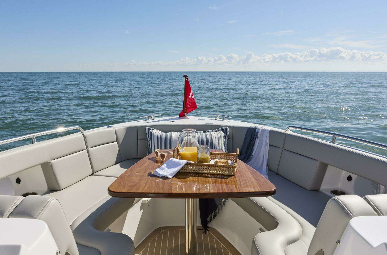 the MJM 38X is a luxurious express day-yacht that guarantees exceptional all-weather/all-conditions performance. With its unique indoor/outdoor HVAC-controlled pilothouse providing protection, 3 social zones, a full head, and plenty of storage, the 3 is all about maximizing fun and adventure on the