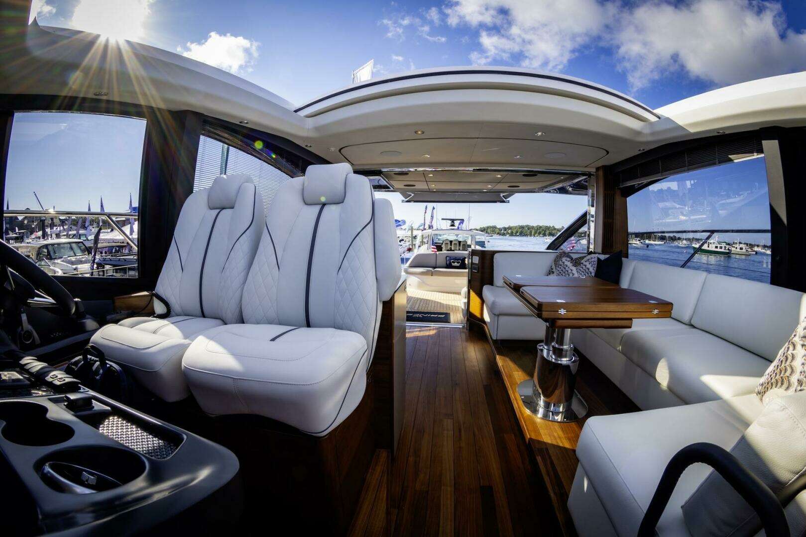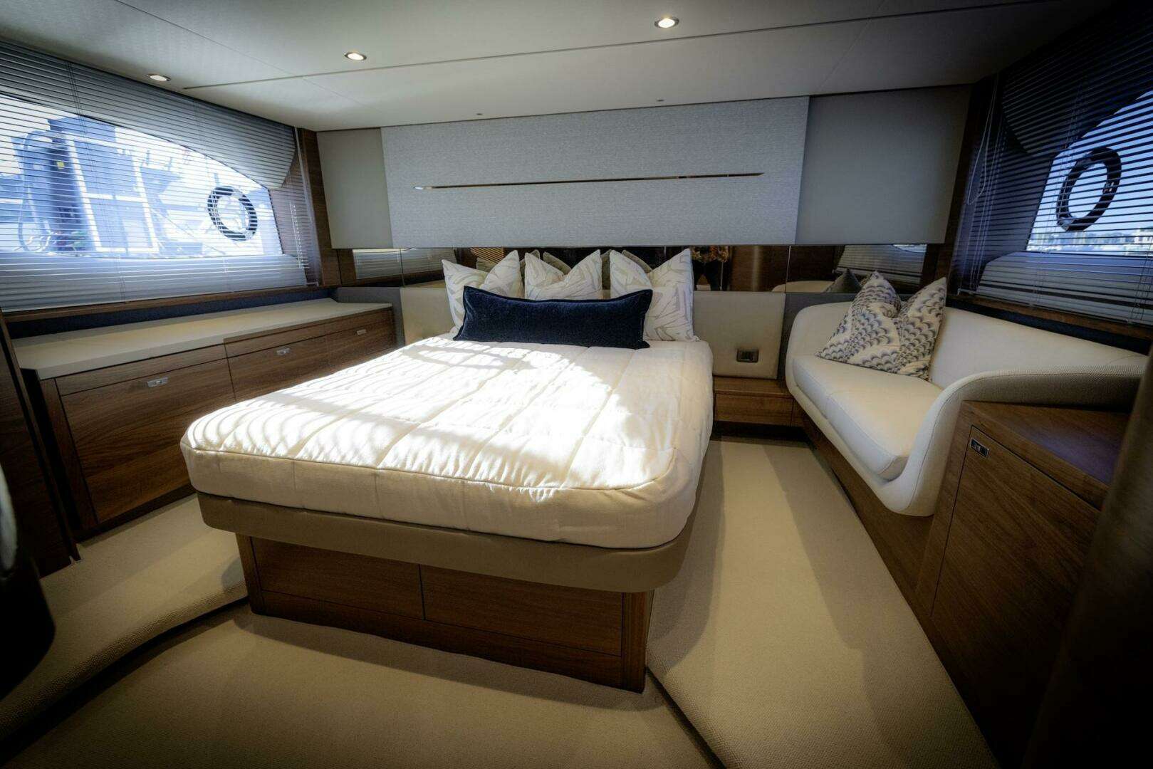 This new V Class continues to deliver throughout her lower deck with optimum use of space and multiple accommodation options. Featuring three generous guests cabins, she is class leading for a yacht of her size. Her ensuite master stateroom utilizes the full beam of the yacht. Additional guests can enjoy the ensuite forward cabin which benefits from the option of scissor berths in addition to a third bunk cabin.